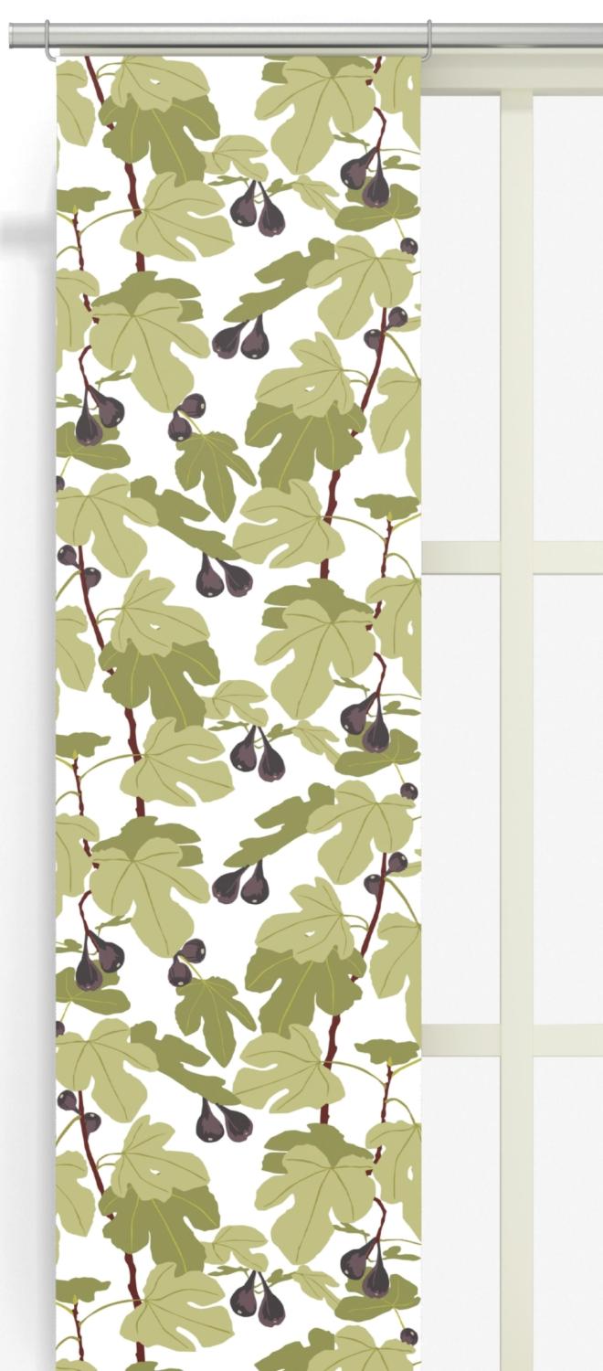 Panelgardin Fikonträd från Arvidssons Textil, designad av Björk Forth, är tillverkad i bomull med ett vackert mönster av fikonblad i olika ljusgröna nyanser och fikon i små klasar på en ljus botten. Panelgardinens naturnära design gör att den passar perfekt i vardagsrum, kök eller uterum för en lugn och harmonisk atmosfär. Overlock nedtill. Storlek: 43x240 cm. Säljes i 2-pack.