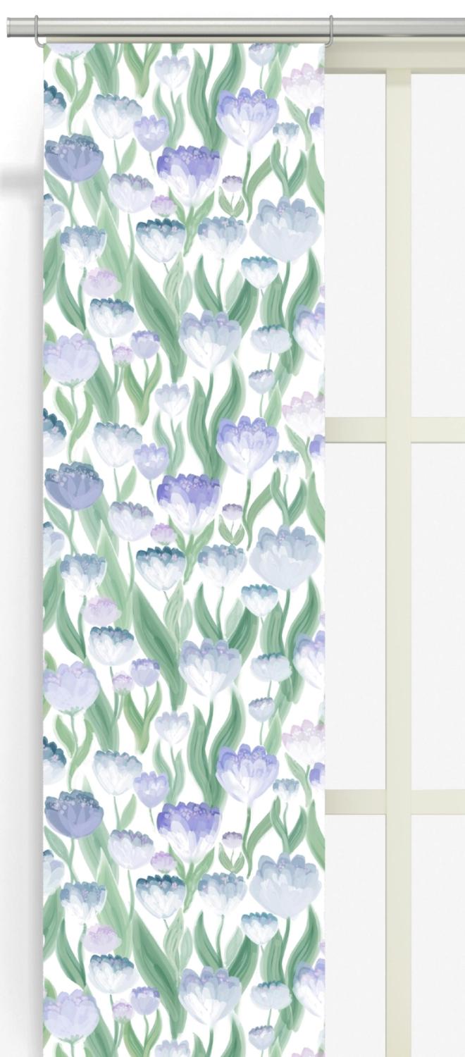Panelgardin Ljuvligt från Arvidssons Textil i bomull har ett vackert blommönster med tulpaner i olika storlekar och gröna blad. De mjuka formerna och de långa bladen skapar ett levande och harmoniskt uttryck med en fin känsla av höjd.