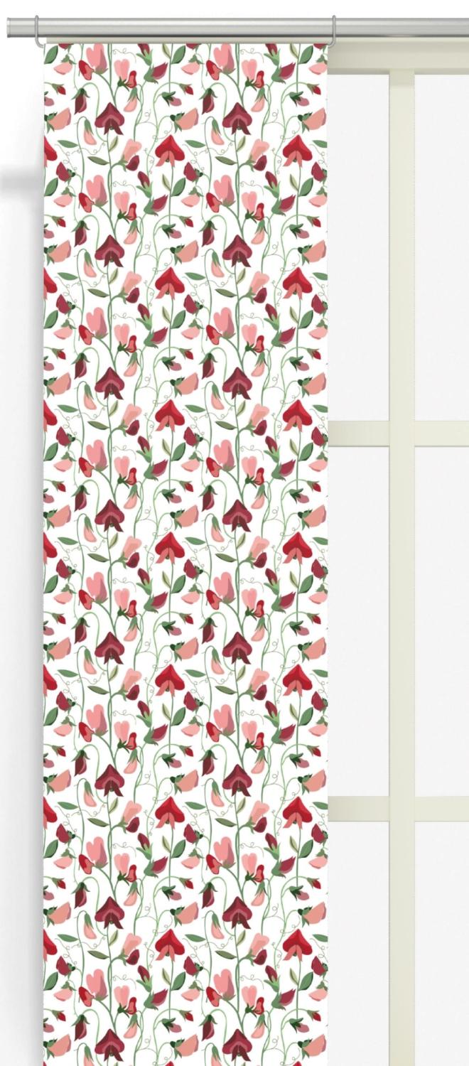 Panelgardin Luktärt från Arvidssons Textil har ett vackert blommönster med slingrande stjälkar och röda luktärter. De tunna stjälkarna ger en fin känsla av höjd och ett levande uttryck. Den blomstrande designen skapar en harmonisk och ombonad atmosfär och sprider en somrig känsla som ger rummet ett mjukt och rofyllt intryck. Designer: Linda Svensson Edevint. Overlock nedtill. Storlek: 43x240 cm. Säljes i 2-pack.