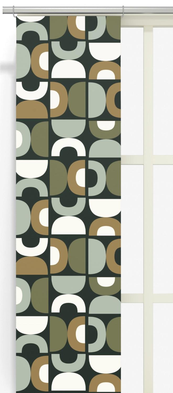 Panelgardin Spiraldans från Arvidssons Textil är designad av Björk Forth och tillverkad i bomull. Det grafiska mönstret i gröna, beige och vita nyanser ger rummet ett harmoniskt och stilfullt uttryck. Den tidlösa designen gör att Spiraldans passar i många olika inredningsstilar, från modern till klassisk inredning.