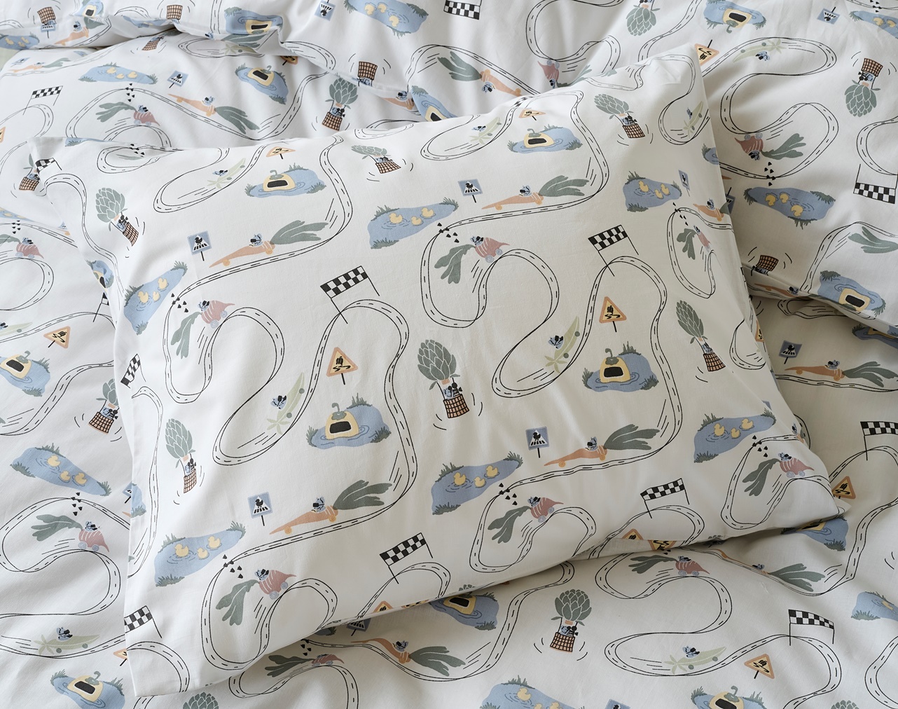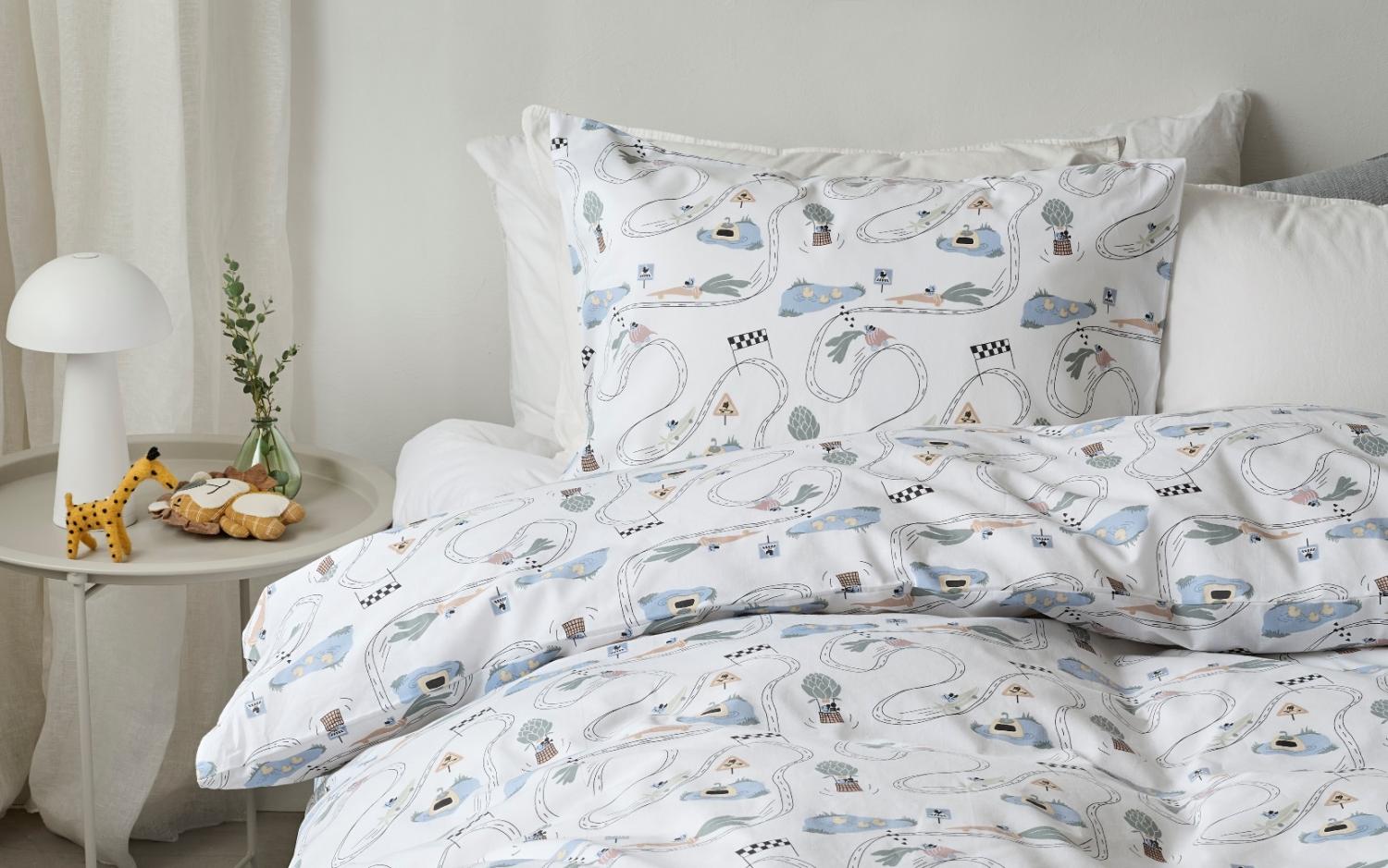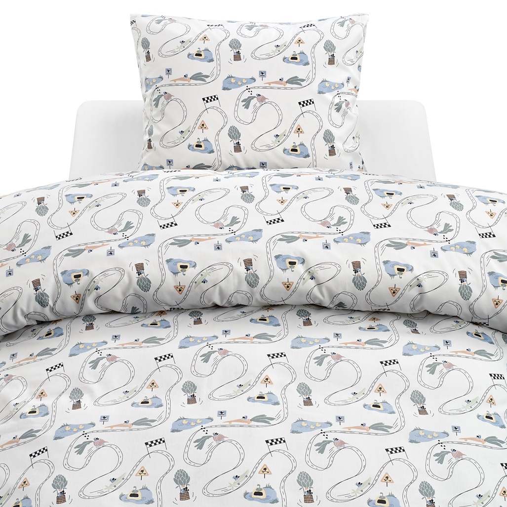Påslakanset Rally från Borganäs Of Sweden har en lekfull design med små racerbilar på en offwhite botten, som blir en fin detalj i barnrummet. Bäddsetet är tillverkat i mjuk bomull med en trådtäthet på 144 TC. Påslakanet har praktiska hörnhål för enkel bäddning och örngott med kuvertöppning. I bäddsetet ingår ett påslakan 150x210 cm och ett örngott 50x60 cm.