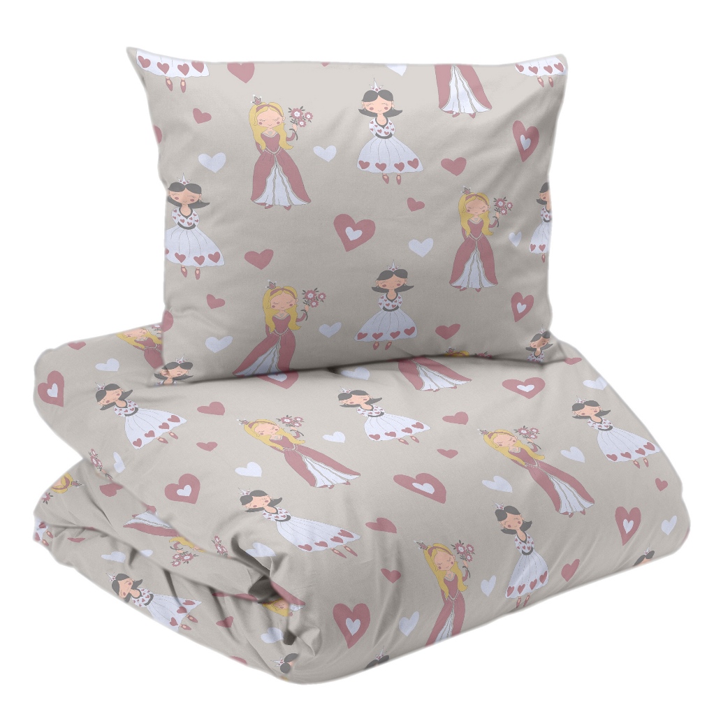 Påslakanset Prinsessa från Redlunds är ett 2-delars set i skön 100% bomull. Bäddsetet har ett charmigt mönster med söta prinsessor och hjärtan på en linnebeige botten, perfekt för att skapa ett lekfullt och ombonat barnrum. Setet har en trädtäthet på 104 TC.