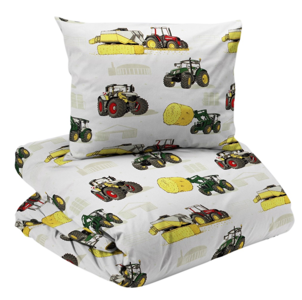 Påslakanset Barn Traktor Vit/Grön 150x210cm Redlunds