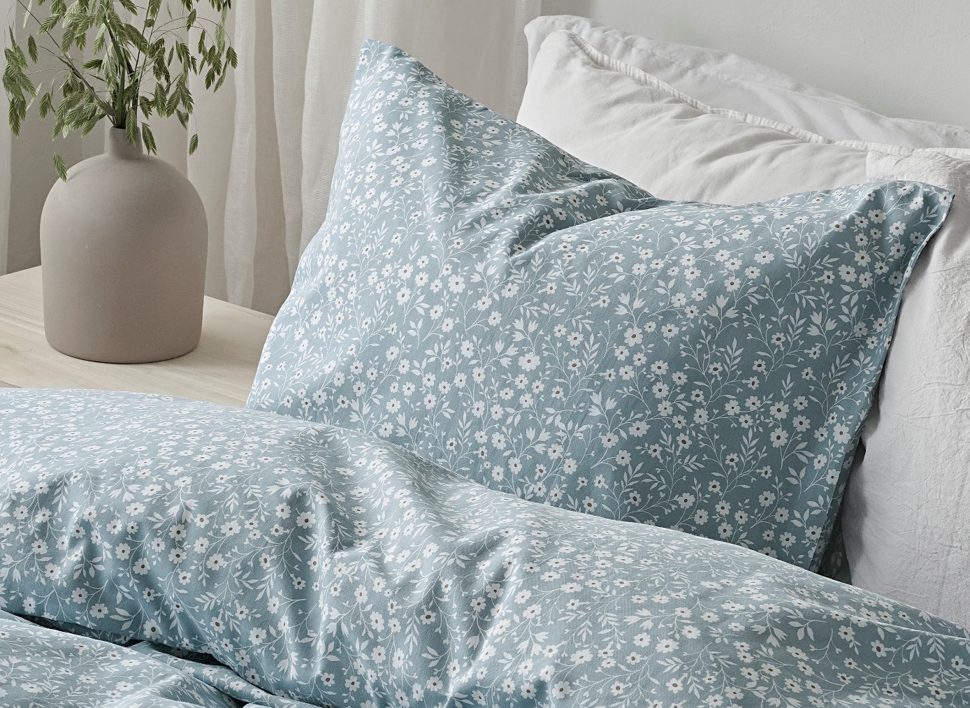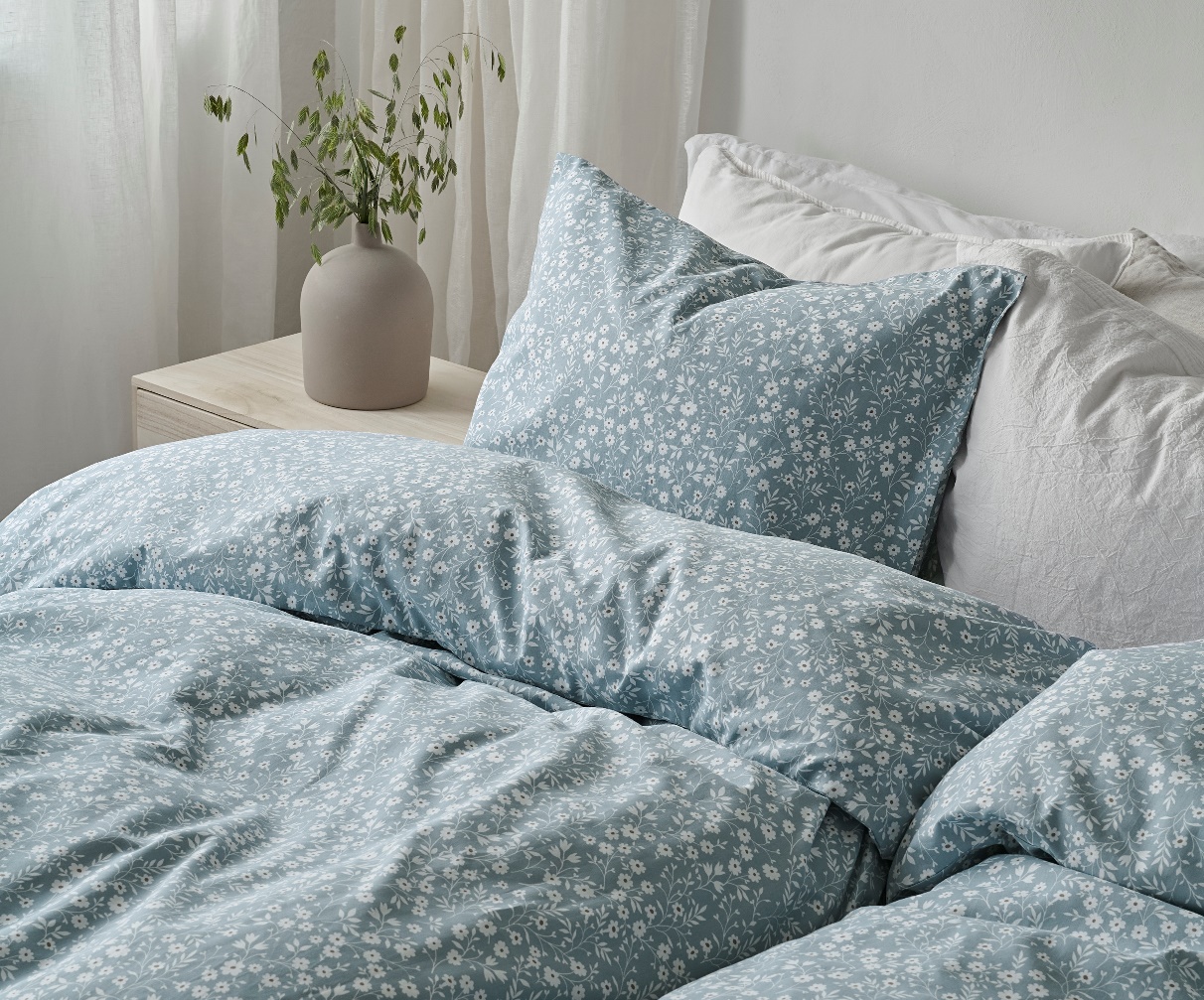 Påslakanset Hedda kommer från det svenska varumärket Borganäs Of Sweden. Ett snyggt bäddset med charmigt blommönster på en ljusblå botten, som ger ett somrigt intryck till sovrummet. Det är tillverkat av mjuk och skön bomull med en trådtäthet på 144 TC. Påslakanet har praktiska hörnhål för enkel bäddning och örngott med kuvertöppning.
