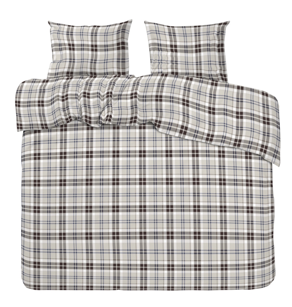 Påslakanset dubbeltäcke Trysil från Redlunds i härlig bomullsflanell som ger extra värme och mysighet. Setet är tillverkat i 100% BCI bomull, som bidrar till en mer hållbar bomullsodling. Det har ett tidlöst rutigt mönster i dämpade toner av blått, brunt och beige, vilket skapar en mysig och lugn atmosfär i sovrummet. Setet är certifierat enligt OEKO-TEX® STANDARD 100, fritt från skadliga ämnen och producerat enligt Amfori för etiska och rättvisa arbetsvillkor.
