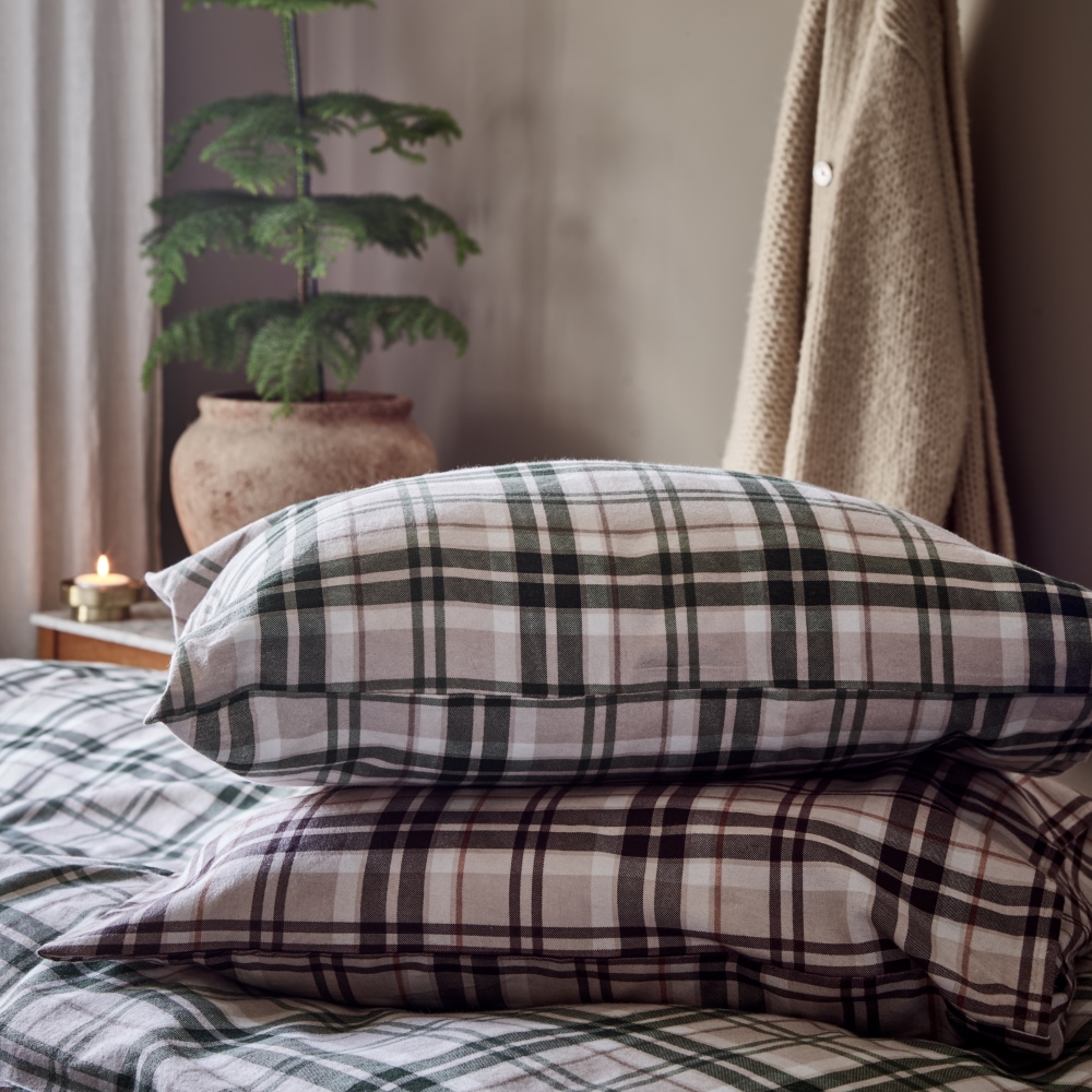Påslakanset Trysil från Redlunds i härlig bomullsflanell som ger extra värme och mysighet. Setet är tillverkat i 100% BCI bomull, som bidrar till en mer hållbar bomullsodling. Det har ett tidlöst rutigt mönster i grönt och beige som skapar en mysig och lugn atmosfär i sovrummet. Den mjuka flanellen värmer skönt och är perfekt för kyliga kvällar. Certifierat enligt OEKO-TEX® STANDARD 100, fritt från skadliga ämnen och producerat enligt Amfori för etiska och rättvisa arbetsvillkor.