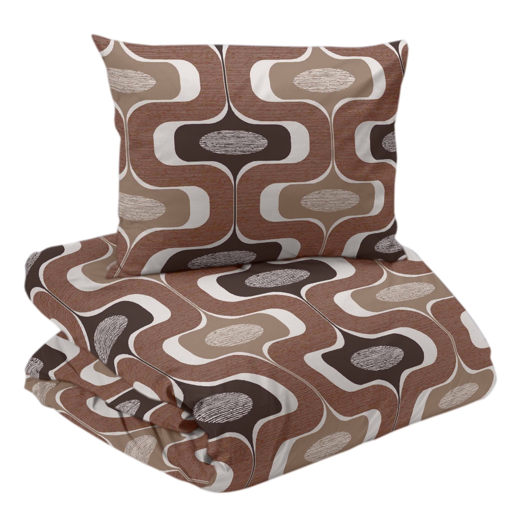Påslakanset Ludvig från Redlunds ger sovrummet en trendig retrokänsla med inspiration från 70-talet. Bäddsetet är tillverkat i mjuk bomull och har ett stilrent, grafiskt mönster. De varma tonerna i brunt, beige och vitt skapar en modern men ändå tidlös look som passar perfekt i både klassiska och mer samtida inredningar. Setet är certifierat enligt OEKO-TEX® STANDARD 100, fritt från skadliga ämnen och producerat enligt Amfori för etiska och rättvisa arbetsvillkor.