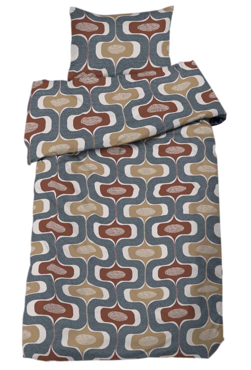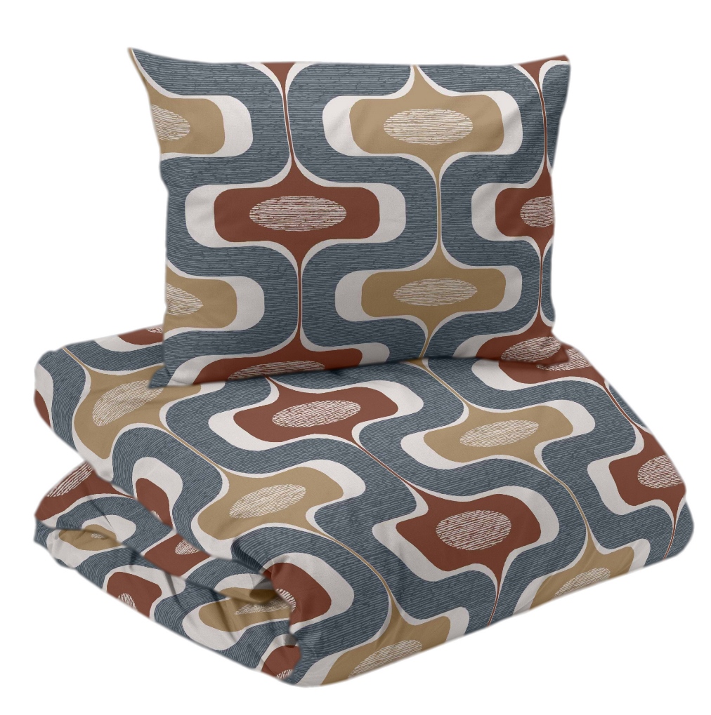 Påslakanset Ludvig från Redlunds ger sovrummet en trendig retrokänsla med inspiration från 70-talet. Bäddsetet är tillverkat i mjuk bomull och har ett stilrent, grafiskt mönster. De varma nyanserna av rost, beige och blått ger en modern men tidlös känsla som passar lika bra i klassiska som i mer moderna inredningar. Setet är certifierat enligt OEKO-TEX® STANDARD 100, fritt från skadliga ämnen och producerat enligt Amfori för etiska och rättvisa arbetsvillkor.