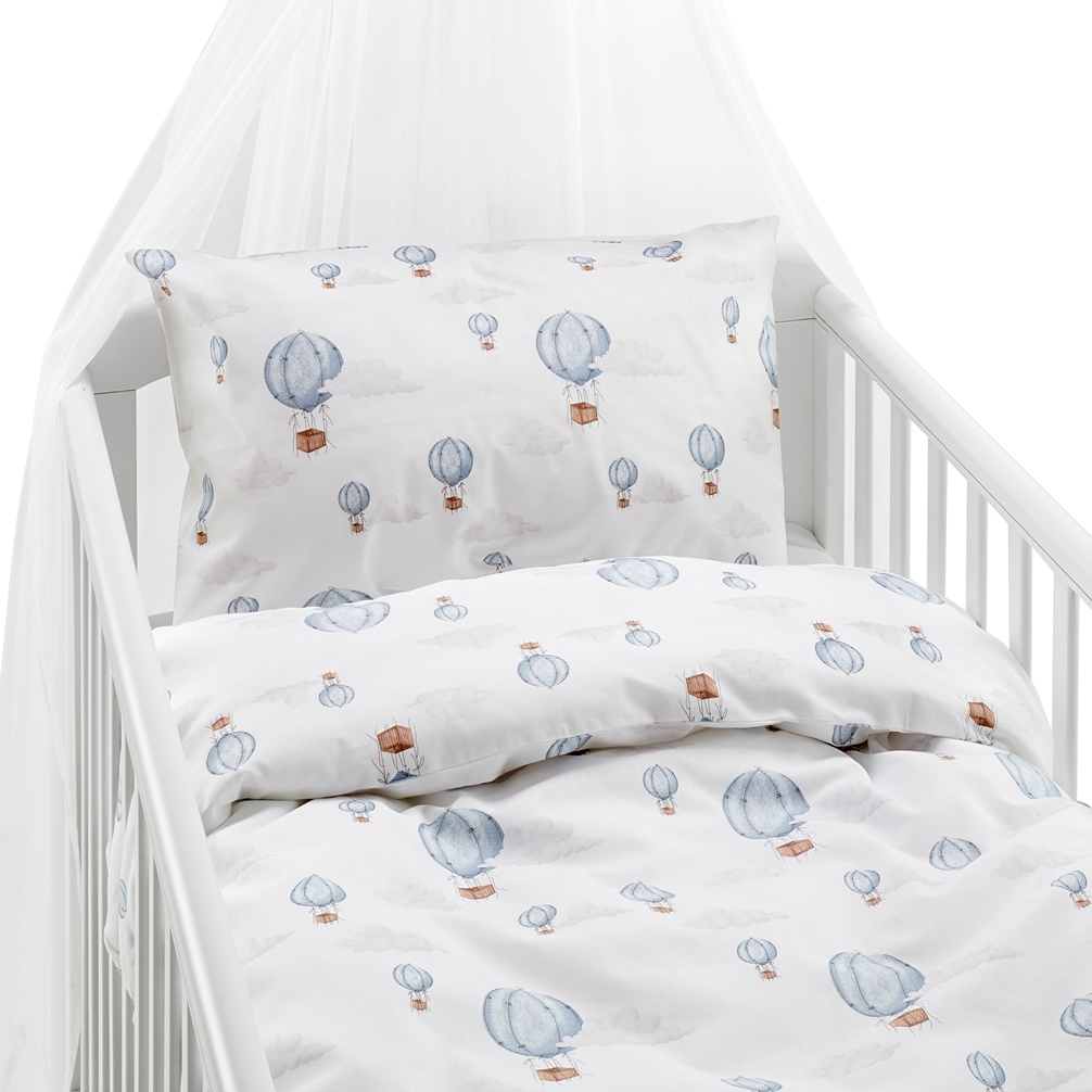 Påslakanset Ballong för spjälsäng från Borganäs of Sweden är tillverkat i mjuk 100% bomull. Det charmiga mönstret med blå ballonger på ljus botten skapar en fin och rofylld känsla i barnrummet. Ett bekvämt bäddset som passar perfekt i spjälsängen och gör sovstunden extra mysig.