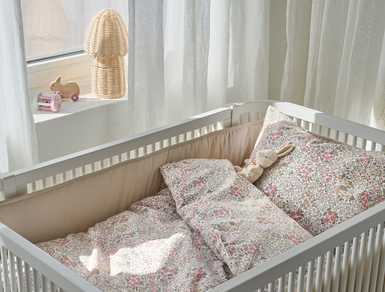 Setet är tillverkat i 100% mjuk och behaglig bomull som gör bäddningen extra inbjudande. Denna vackra design är perfekt för dig som vill skapa en harmonisk och inbjudande känsla till barnrummet.