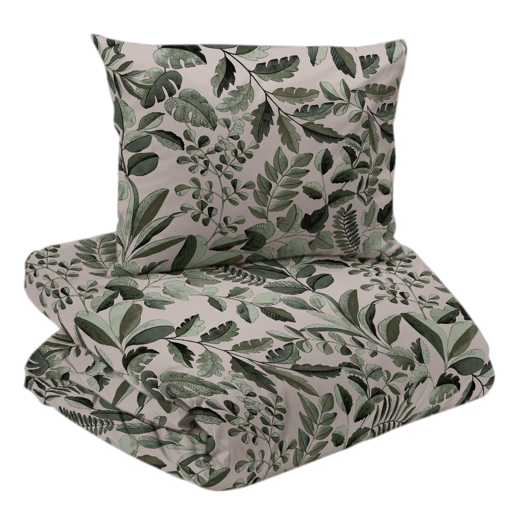 Påslakanset Theo från Redlunds är tillverkat i mjuk och skön bomull och har ett vackert mönster av olika blad och ormbunkar. De dämpade tonerna av grönt på en ljus botten skapar en lugn och harmonisk atmosfär som inbjuder till avkoppling. Certifierat enligt OEKO-TEX® STANDARD 100, fritt från skadliga ämnen och producerat enligt Amfori för etiska och rättvisa arbetsvillkor.