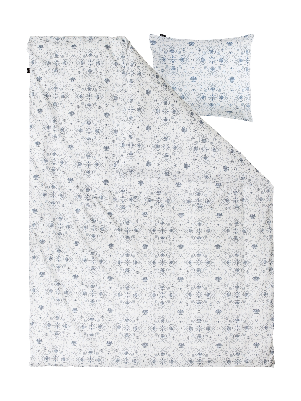 Påslakanset Torgestad från Kosta Linnewäfveri i mjuk och skön bomull med ett elegant damaskinspirerat mönster. De skiftande blå eller gröna tonerna mot vit botten ger en somrig och känsla. Bäddsetet har en trådtäthet på 144 TC. I setet ingår ett påslakan 150x210 cm och ett matchande örngott 50x60 cm.