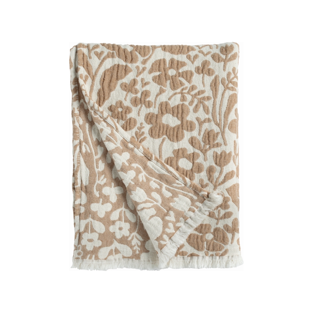 Pläd Fauna från Almedahls i en varm brun nyans är en jacquardvävd bomullspläd i mjukt och högkvalitativt material som ger en ombonad känsla i hemmet. Mönstret formgavs av Anna-Lena Emdén under 1970-talet och hette ursprungligen Ängland. Det retroinspirerade uttrycket med stiliserade former skapar en tidlös och harmonisk atmosfär. Pläden passar perfekt över soffan, på sängen eller som en dekorativ detalj och är lika fin året runt. Storlek: 120x170 cm.