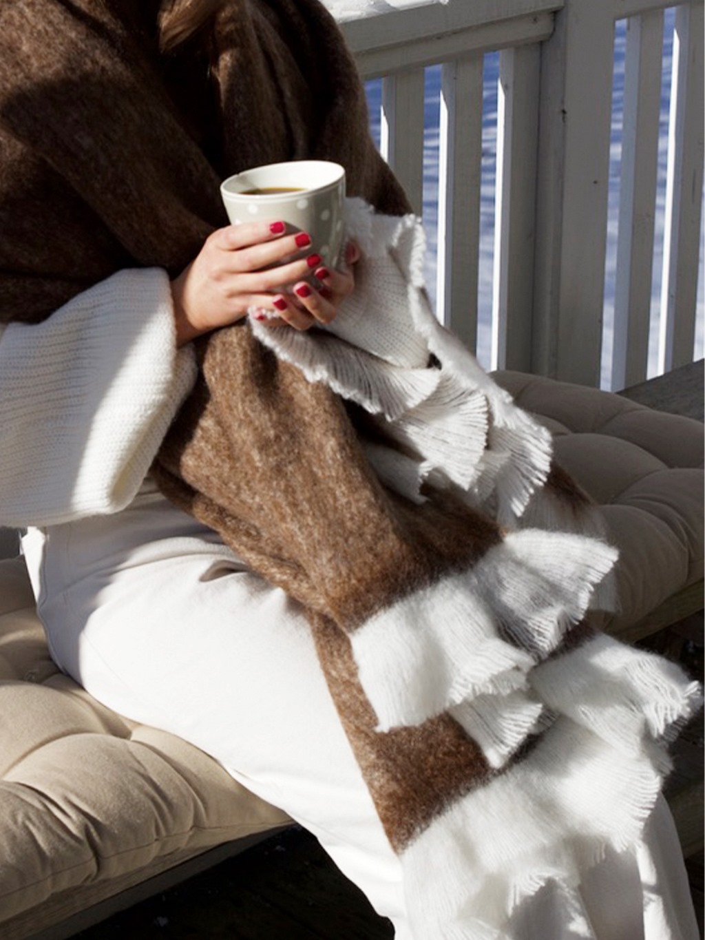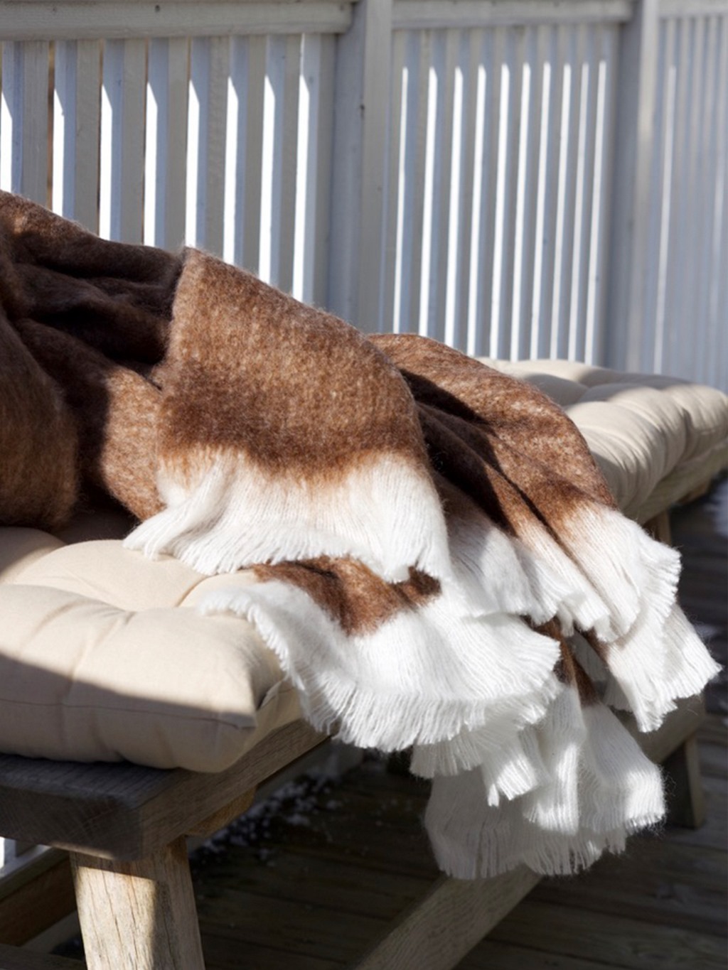 Pläd Elva brun från Svanefors är en mjuk och tjock pläd i akryl med ullblandning, som ger både värme och komfort. Dekorativa fransar på kortsidorna tillför en charmig detalj, vilket gör pläden perfekt för mysiga stunder i soffan, sängen eller favoritfåtöljen. Storlek: 130x170 cm.