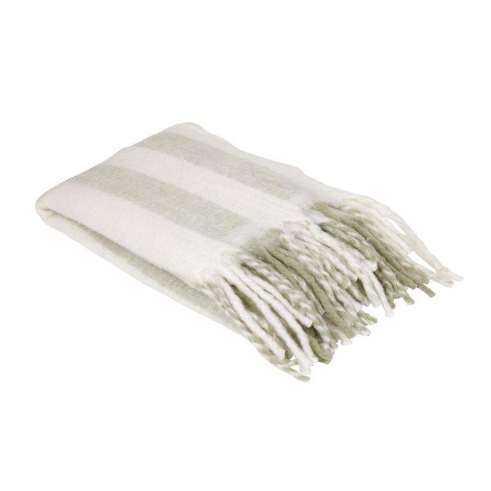 Pläd Mia från Fondaco är en fluffig och gosig pläd med breda ränder i gröna och ljusa nyanser som ger ett mjukt och harmoniskt intryck. Den är tillverkad i en behaglig mix av akryl och ull, där akrylfibrerna bidrar till att pläden behåller sin form och mjukhet över tid, medan ullen ger en naturlig värme och en lyxig känsla.