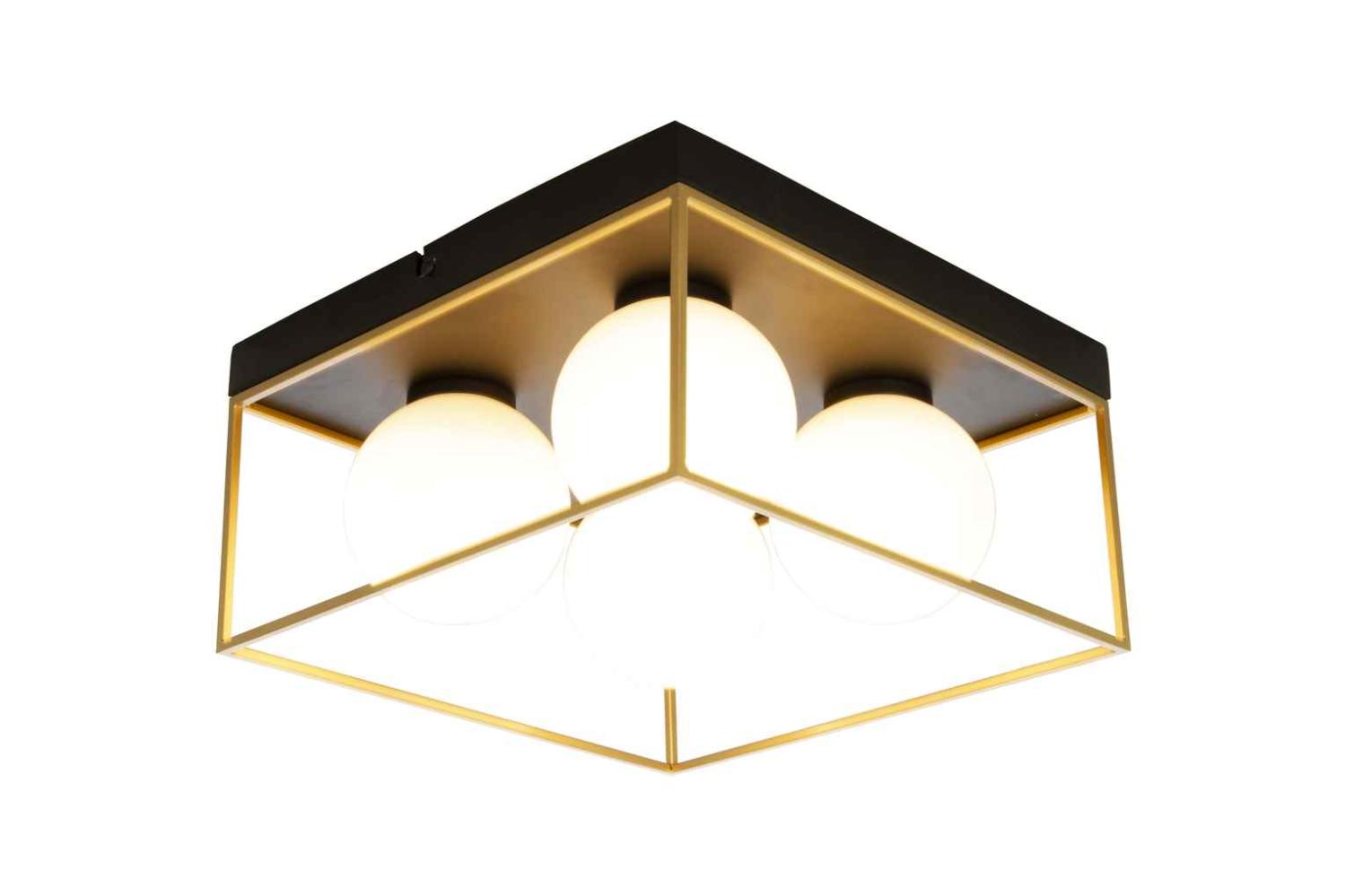 Astro är designad Aneta Lighting i stilren svartlackerad metall med fyra opalvita glaskupor inramade av eleganta gulddetaljer som ger en lyxig och modern känsla. Plafonden är monterad på en svart takplatta och har ett bygelupphäng med kopplingsplint för enkel installation. Perfekt för att skapa ett exklusivt och mjukt ljus i rummet. Till Astro rekommenderas en ljuskälla med en G9 sockel, max 4x20W. Produktens höjd är 15 cm och längd och bredd är 28 cm. Ljuskällor ingår ej.