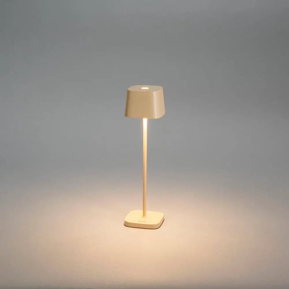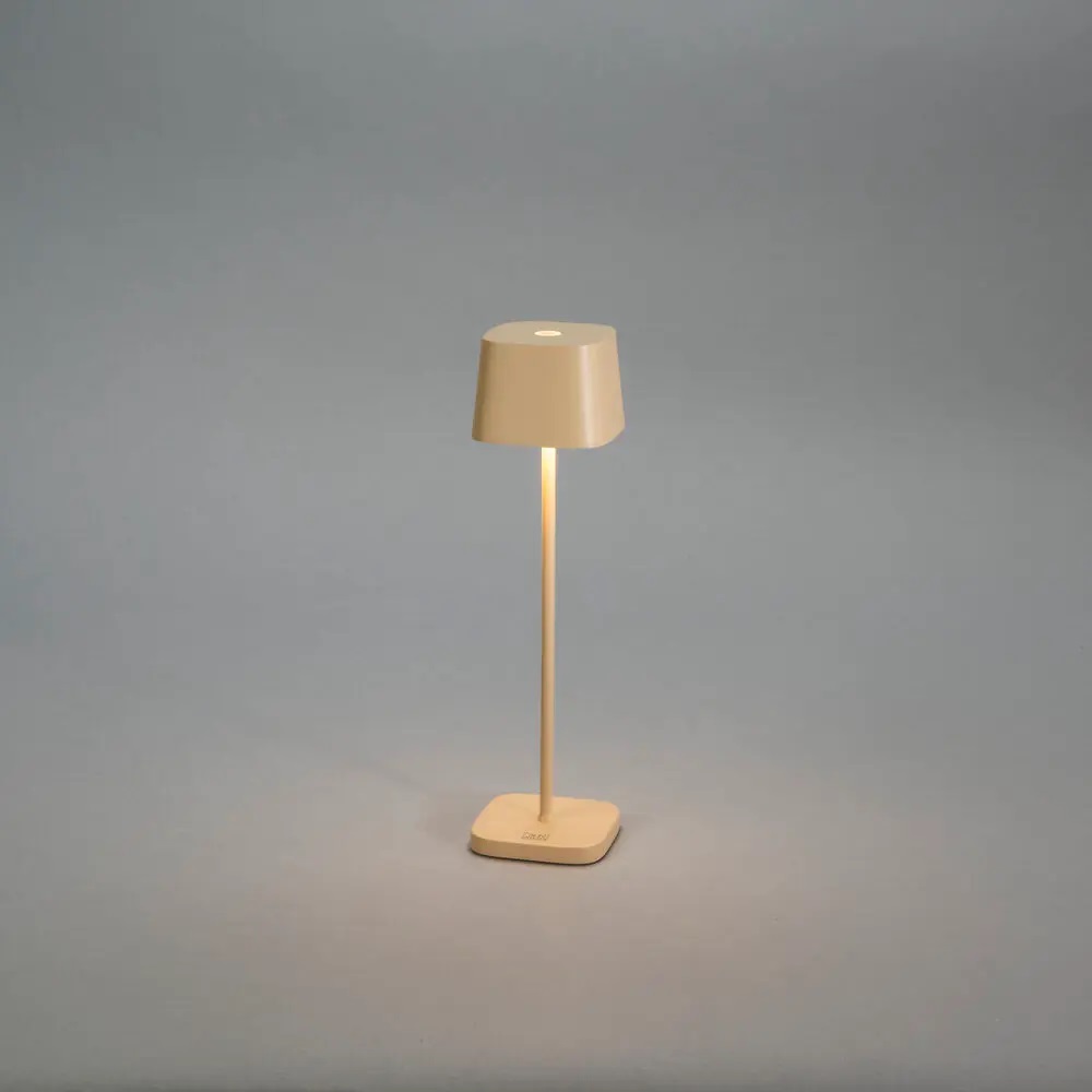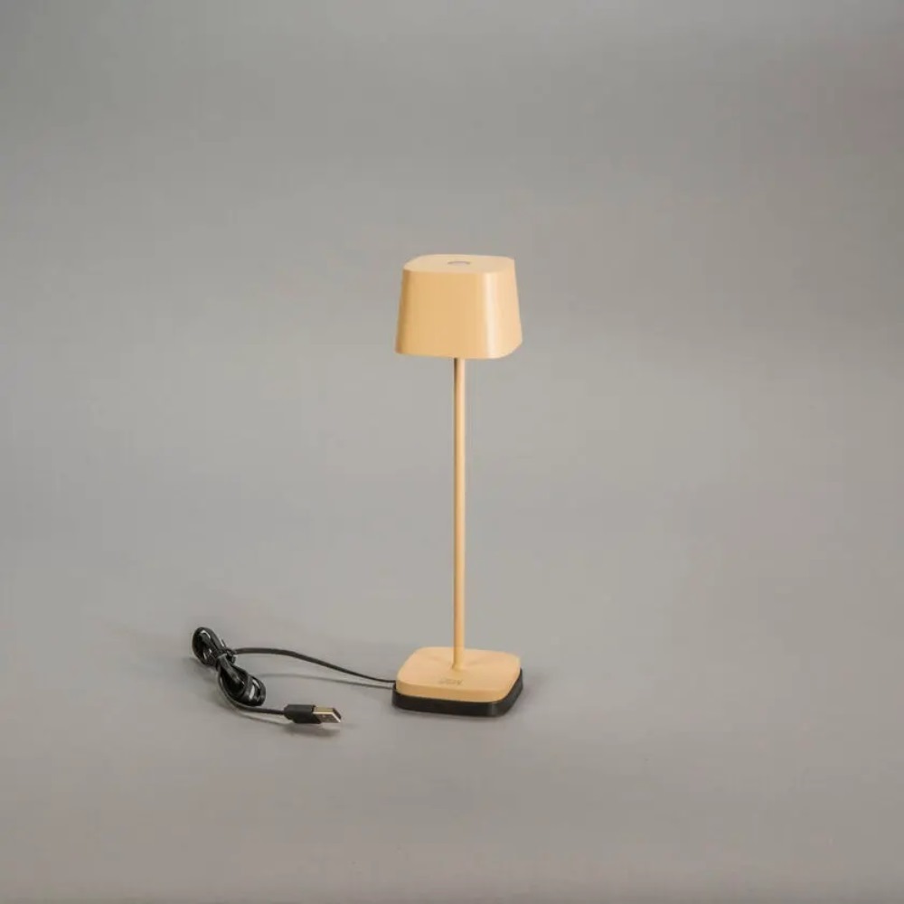 Portabel bordslampa Capri Mini från Konstsmide i lackad sandfärgad aluminium är en stilren loungelampa med ställbar belysning där man kan välja färgtemperatur 2200K eller 3000K och är dimbar. Bordslampan passar lika bra inne i vardagsrummet som på uteplatsen. Laddas via USB och har en batteritid på ca 9 timmar vid full ljusstyrka. Av/på knapp i touch på skärmen.