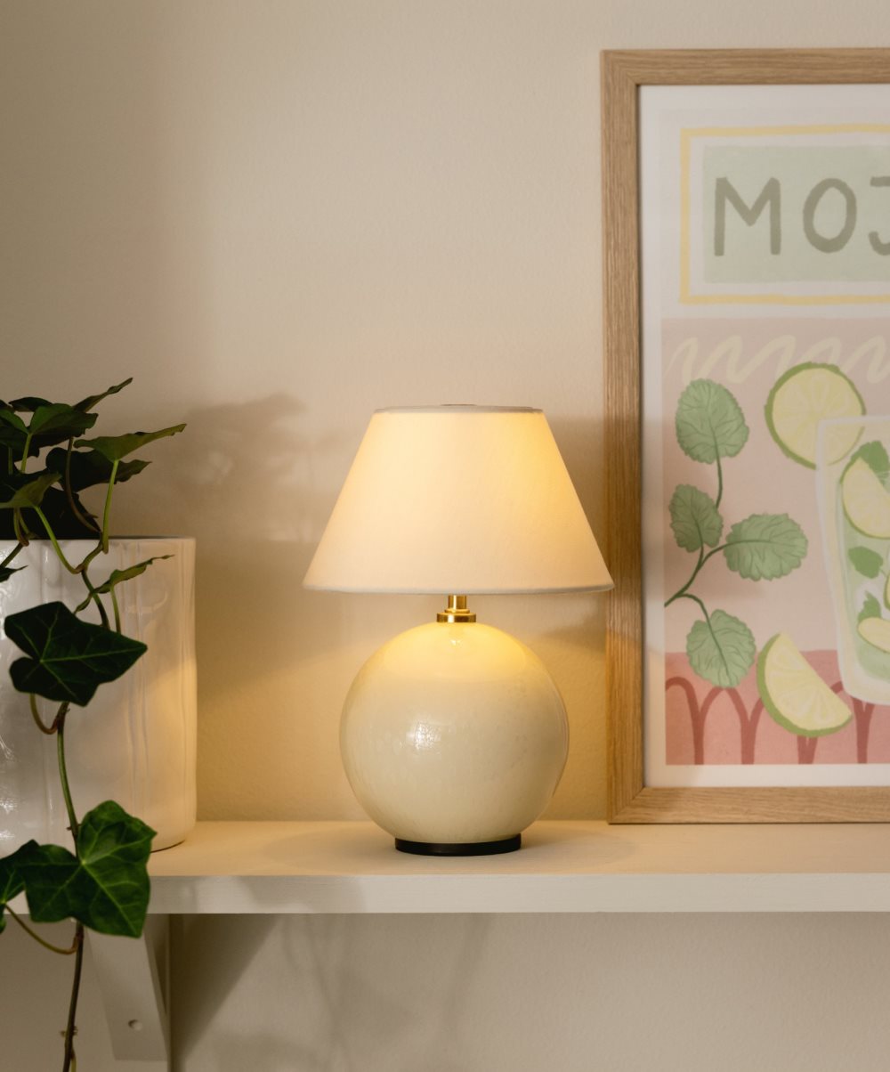 Iris 16 portabel bordslampa från Globen Lighting kombinerar klassisk form med personlig karaktär. Lampan är tillverkad av genomfärgat beige glas med unika inblåsta bubblor och har en matchande bomullsskärm som sprider ett mjukt sken. Den sladdlösa designen gör Iris till en flexibel ljuskälla som är enkel att flytta runt i hemmet.