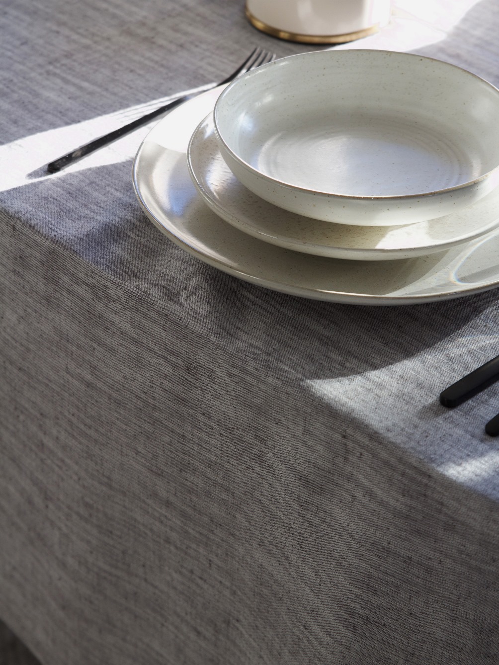 Bordsduk Sabina gråsvart från Svanefors i en mjuk bomulls- och linneblandning. Tyget är vävt med chambray, vilket ger ett vackert linneliknande utseende. Den runda designen passar perfekt för större bord och skapar en inbjudande känsla i rummet. Diametern är 200 cm.