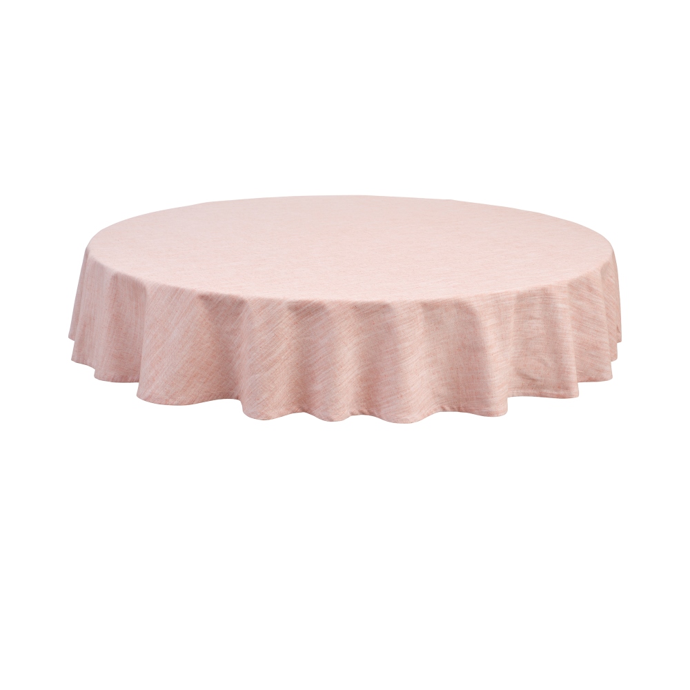 Bordsduk Sabina rosa från Svanefors i en mjuk bomulls- och linneblandning. Tyget är vävt med chambray, vilket ger ett vackert linneliknande utseende. Den runda designen passar perfekt för större bord och skapar en inbjudande känsla i rummet. Diametern är 200 cm.