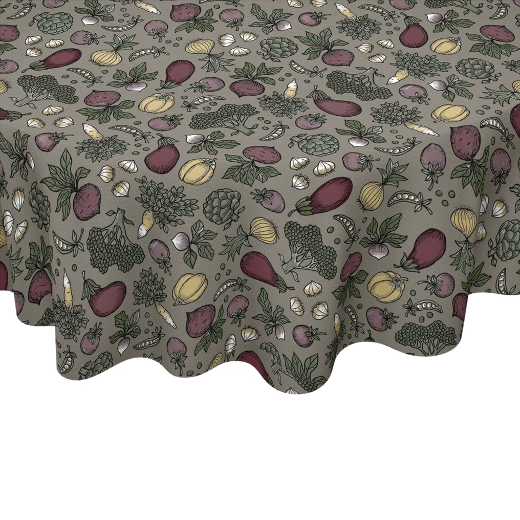 Vaxduk Skördetid från Nina Royal med en rund form med rakt skuren kant och ett fint mönster av säsongens skörd olika grönsaker och frukter. Vaxduken är tillverkad av 100% PVC utan ftalater och är både praktisk och hållbar med en design som passar utmärkt både på köksbordet och på utebordet i trädgården. Den är enkel att torka av och kombinerar stil med funktionalitet. Diametern: 140 cm.