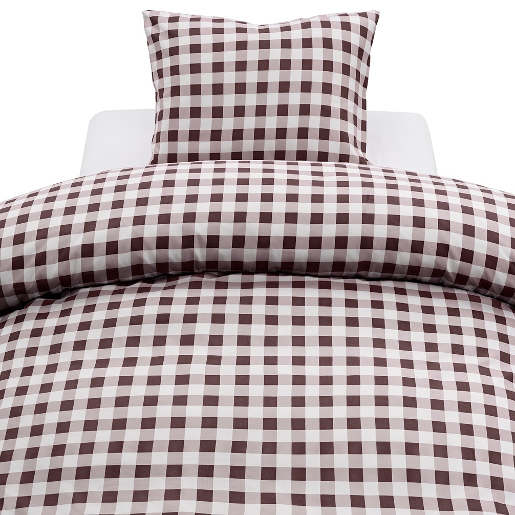 Rutigt Påslakanset Microfiber Turild Brun 150x210cm Harmony