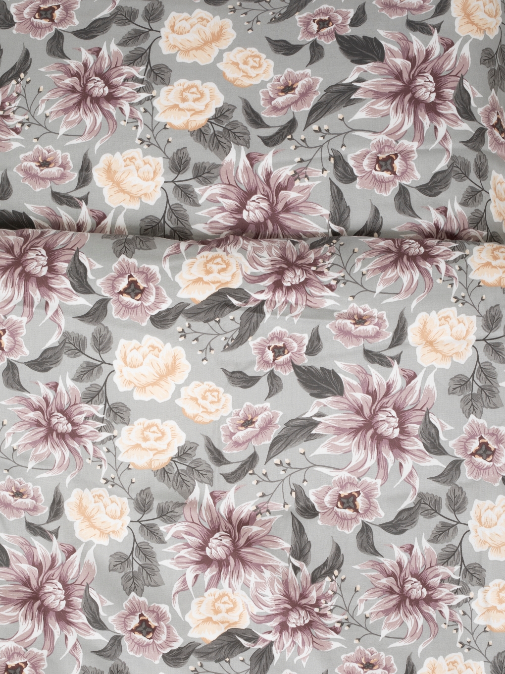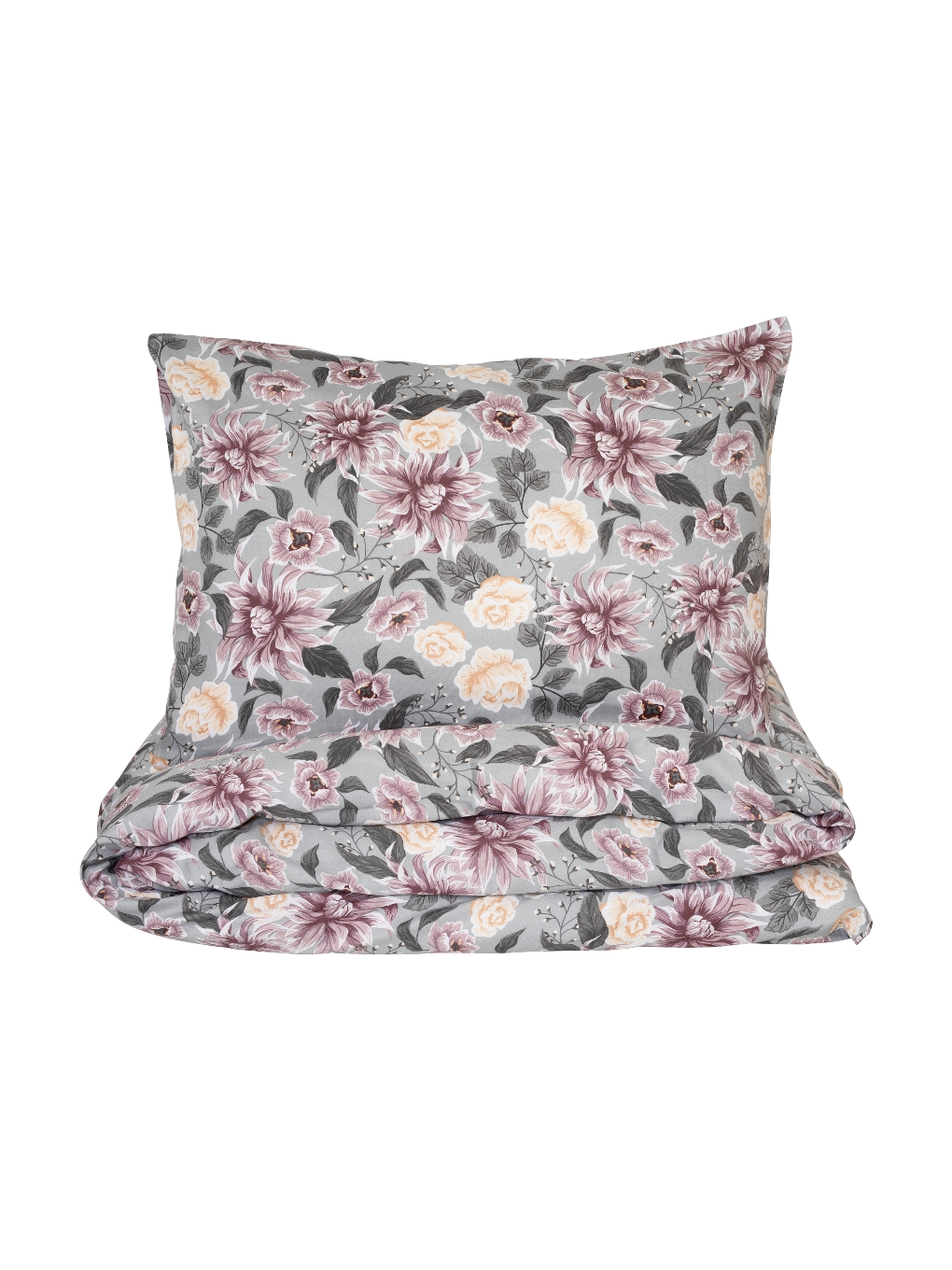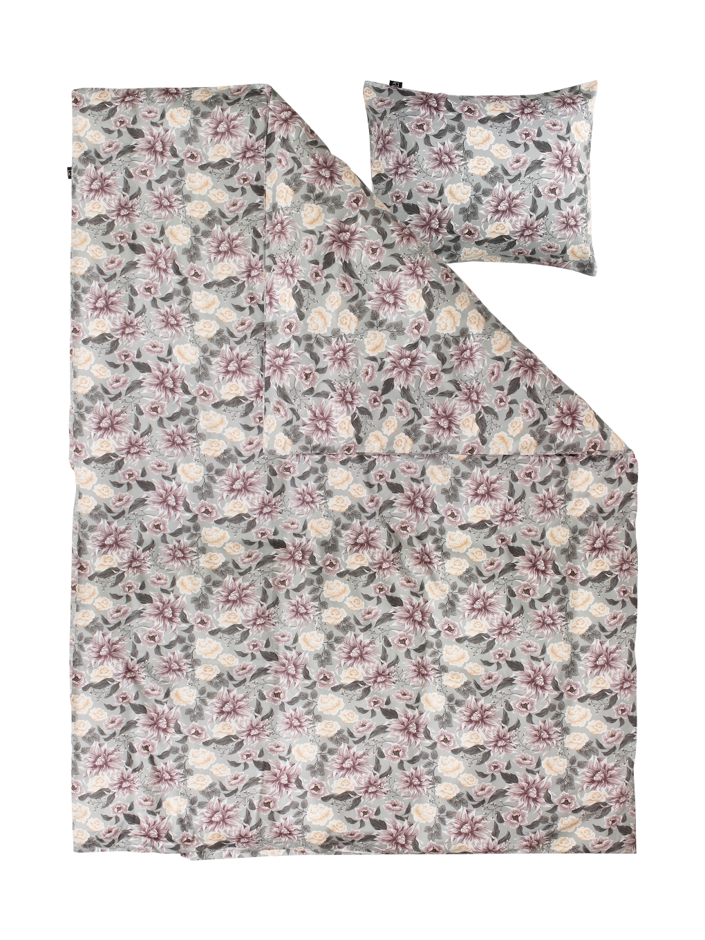 Satin Påslakanset Blommigt Bollungen Grå 150x210cm Kosta Linnewäfveri