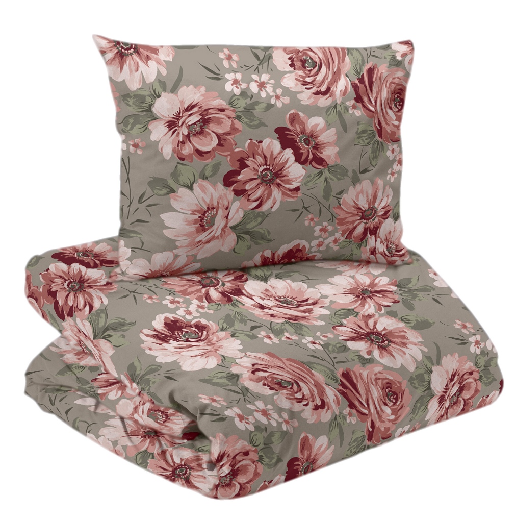 Satin Påslakanset Blommigt Dagmar Linnebeige/Rosa 150x210cm Redlunds