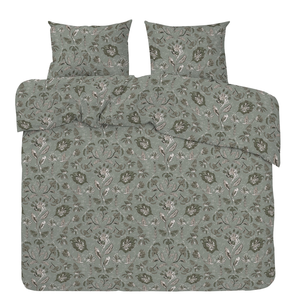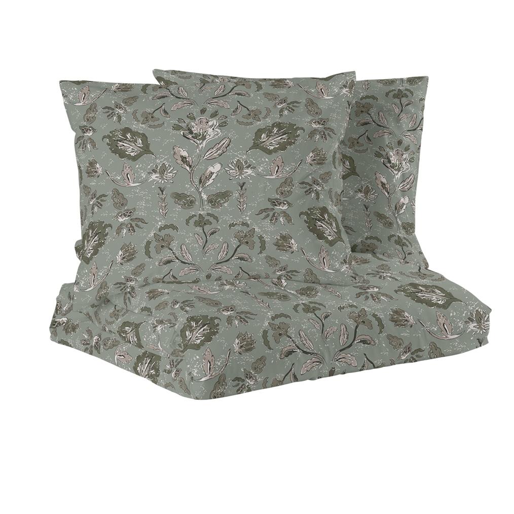 Satin Påslakanset Blommigt Dubbeltäcke Ingela Grön 220x210cm Redlunds