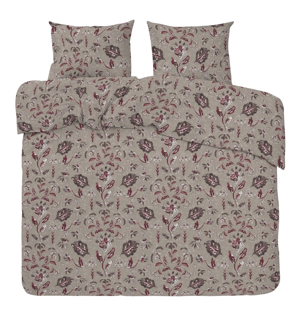 Satin Påslakanset Blommigt Dubbeltäcke Ingela Mullvad/Vinrött 220x210cm Redlunds