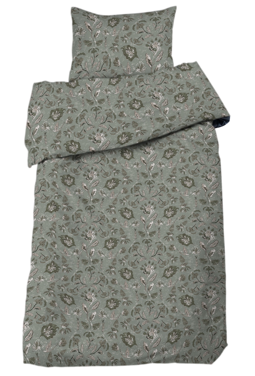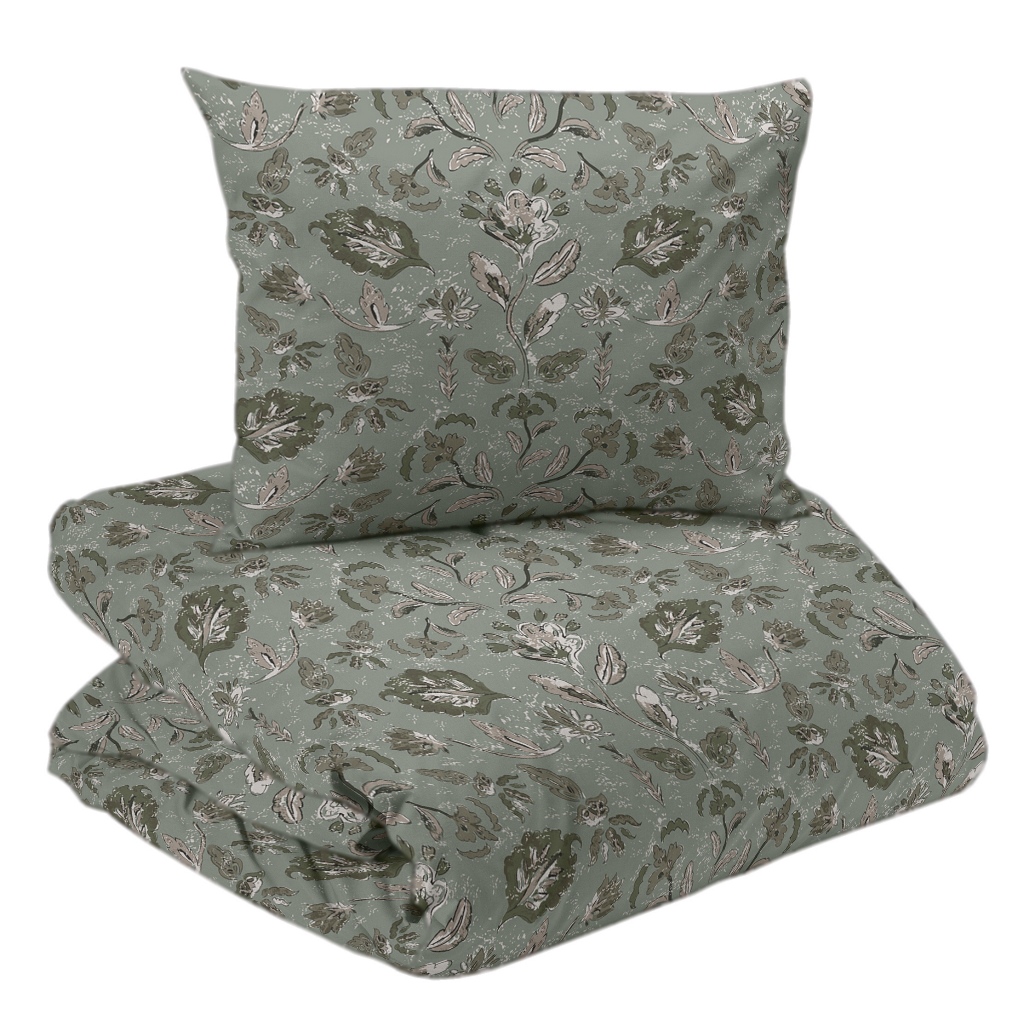 Satin Påslakanset Blommigt Ingela Grön 150x210cm Redlunds