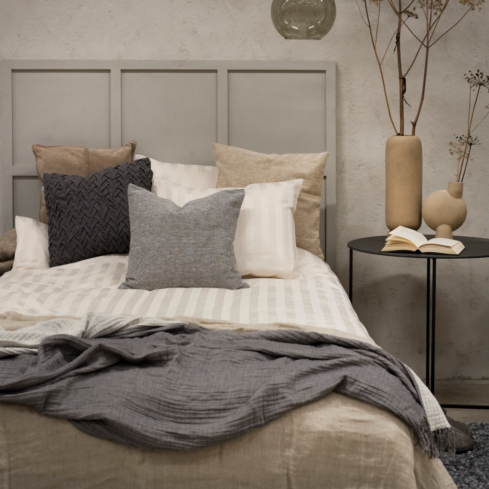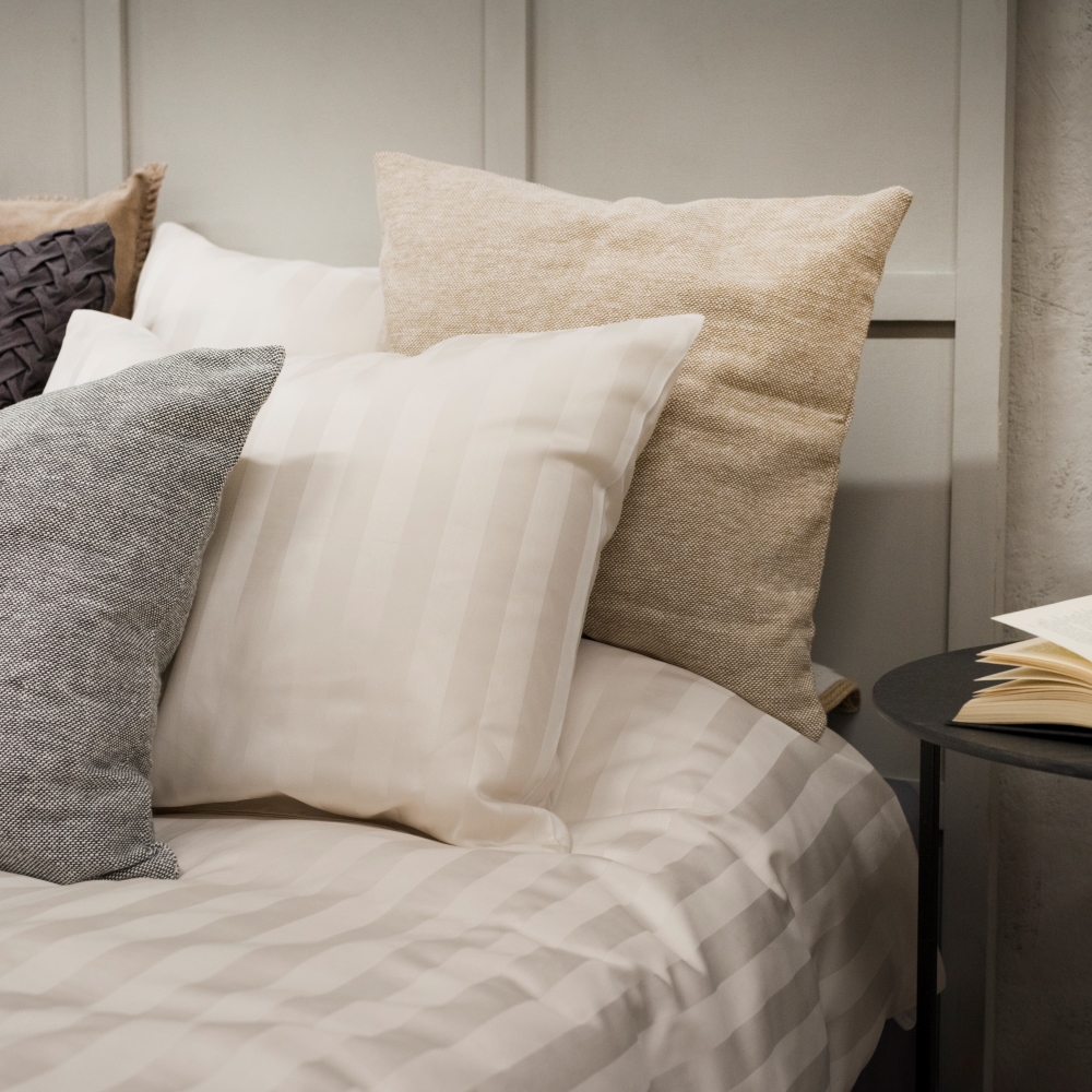 Påslakanset Satin inklusive örngott från Borganäs of Sweden i champagnefärgad bomullssatin med en vacker lyster. Mönstret är tidlöst med vävda matta och blanka ränder som ger en elegant och stilfull känsla. Det har en trådtäthet på 197 TC med praktiska hörnhål för enkel bäddning och örngott med kuvertöppning.