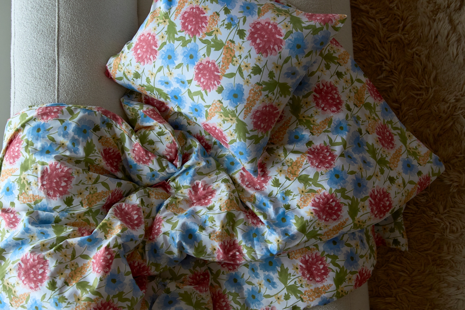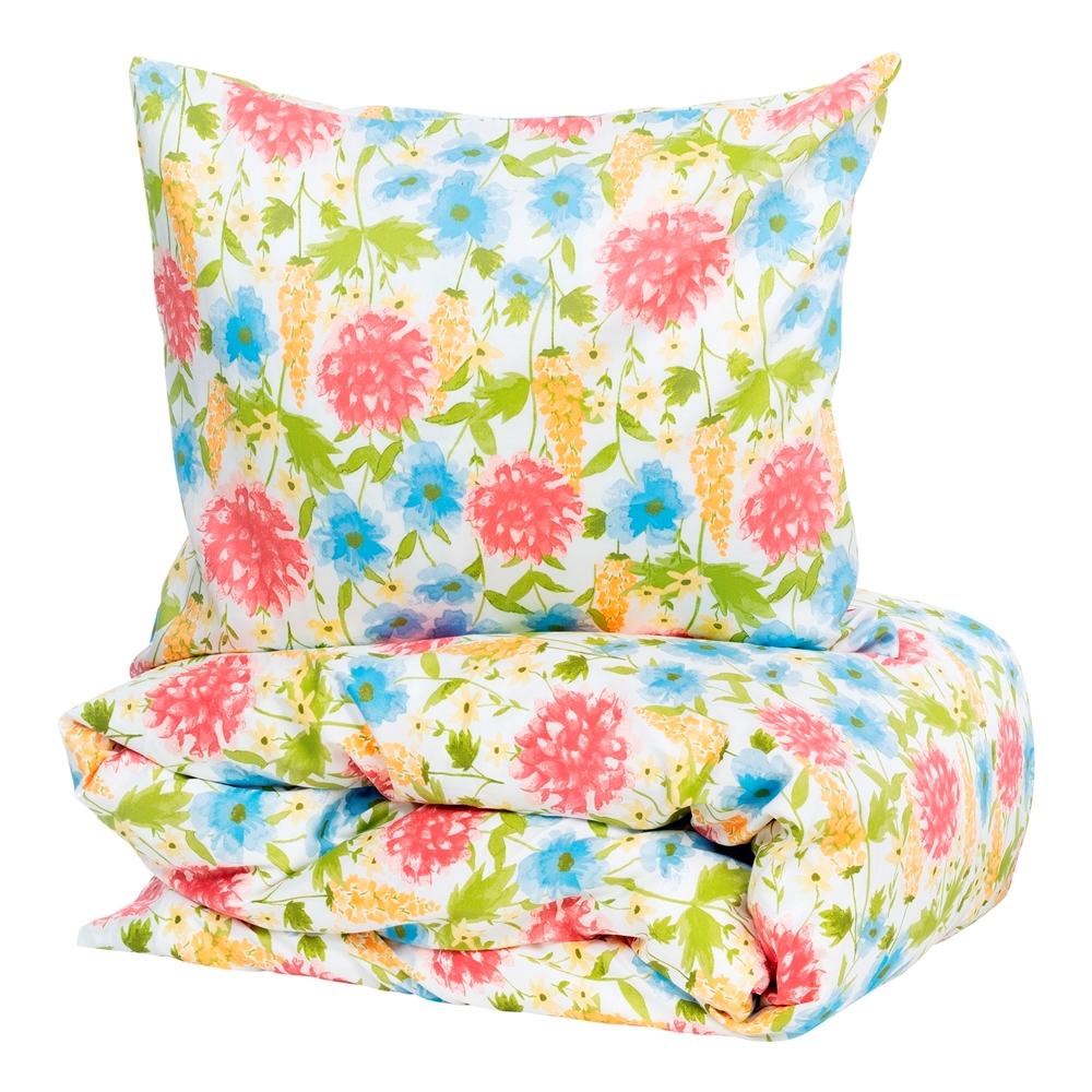 Det vackra flerfärgade mönstret ger en ljus och somrig känsla året om. Den tidlösa designen gör bäddsetet lätt att kombinera med olika inredningsstilar och skapar ett harmoniskt helhetsintryck. Bäddsetet har en trådtäthet på 200 TC.