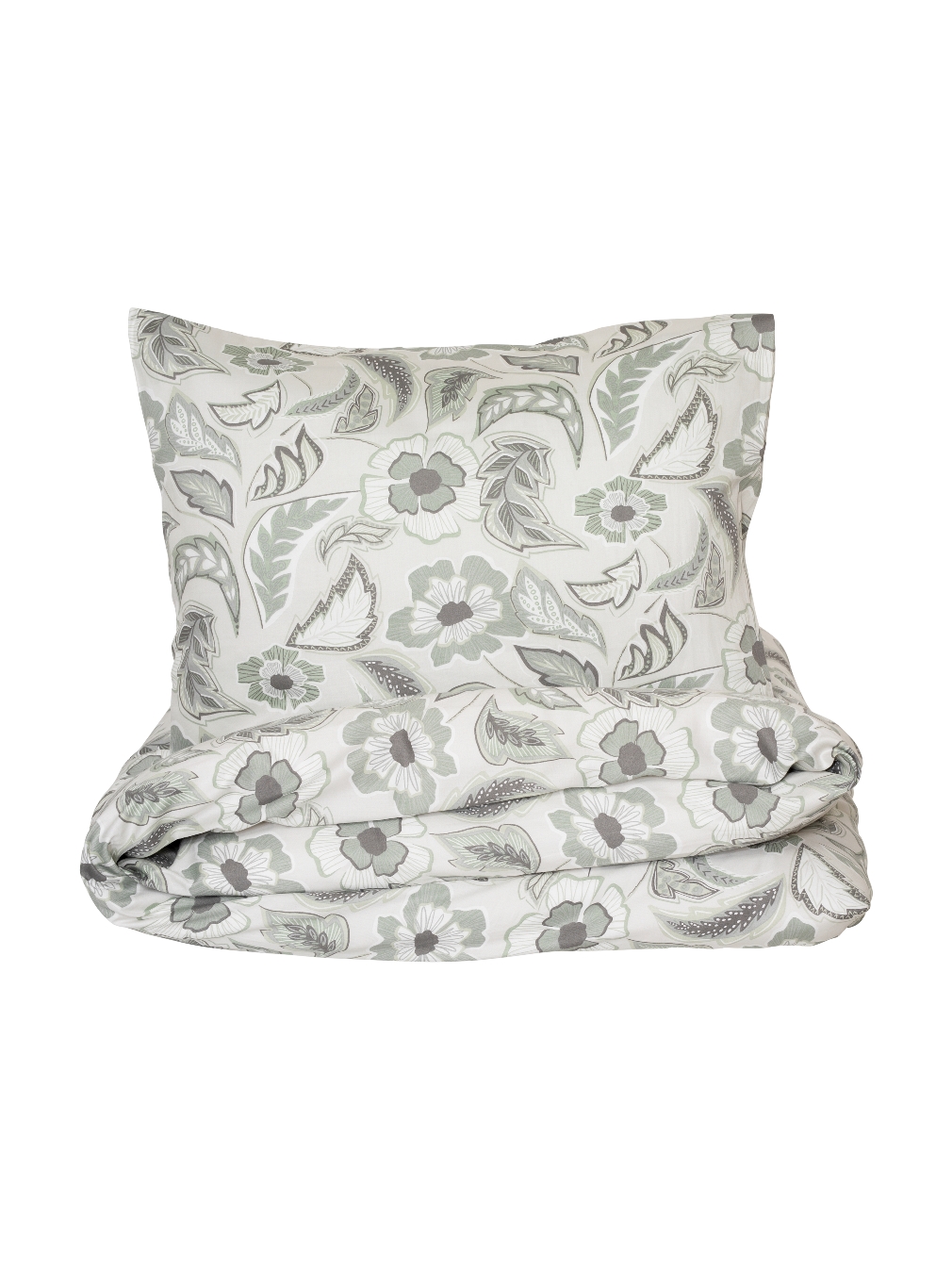 Påslakanset Gillanda kommer från Kosta Linnewäfveri i mjuk och skön satin med ett modernt paisleyinspirerat mönster. De harmoniska tonerna i beige och grått mot vit botten skapar en lugn och elegant känsla i sovrummet. Bäddsetet har en trådtäthet på 200 TC.