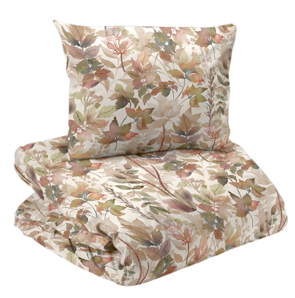 Påslakanset Palermo från Redlunds är tillverkat i mjuk och skimrande bomullssatin och har ett vackert mönster av löv i en varm färgskala. De dämpade tonerna av vinrött och beige mot en offwhite botten ger en lyxig och ombonad känsla som passar perfekt för mysiga kvällar. Certifierat enligt OEKO-TEX® STANDARD 100, fritt från skadliga ämnen och producerat enligt Amfori för etiska och rättvisa arbetsvillkor.