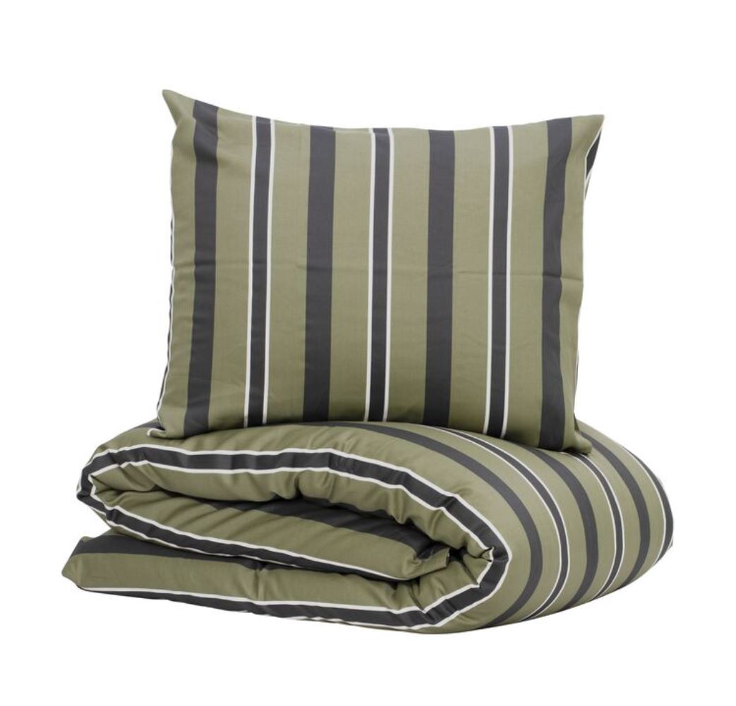 Påslakanset Heestrand från Lord Nelson i mjuk och skön satin med vacker lyster, perfekt för dig som vill ha en säng som känns extra inbjudande. Bäddsetet har breda ränder i olivgrönt kombinerat med smalare ränder i mörkgrått och vitt, vilket ger en stilren och tidlös design som lyfter sovrummet. Trådtäthet: 200 TC.