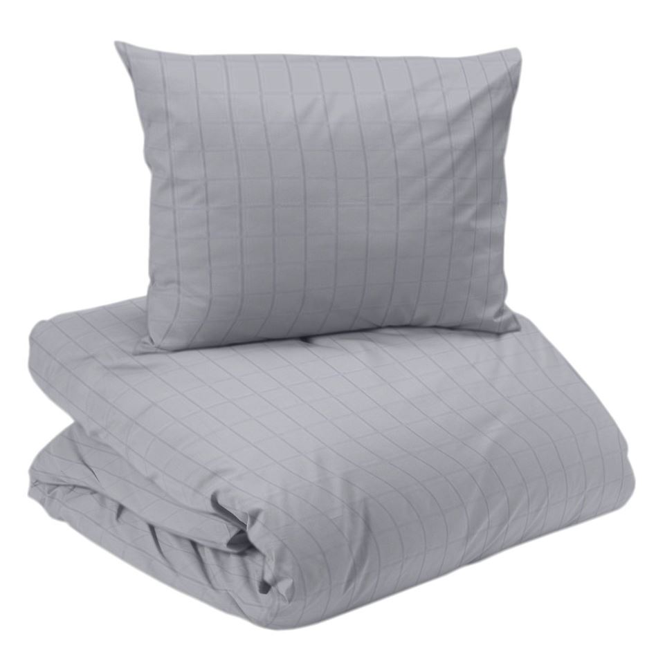 Satin Påslakanset Rutigt Ljusgrå Redlunds Square 150x210cm