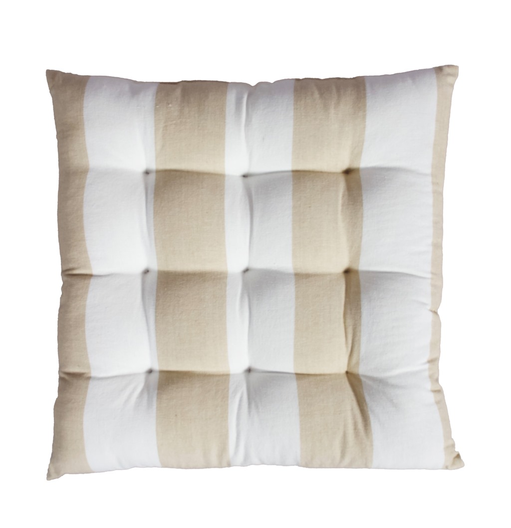 Stolsdyna Louise från Svanefors har fina ränder i beige och vitt som ger ett somrigt uttryck. Den fina designen i mjuk bomull har dekorativa stygn och en fyllning av polyester för extra komfort. En bekväm stolsdyna som är enkel att matcha med andra textilier och ger stolen en ombonad känsla.