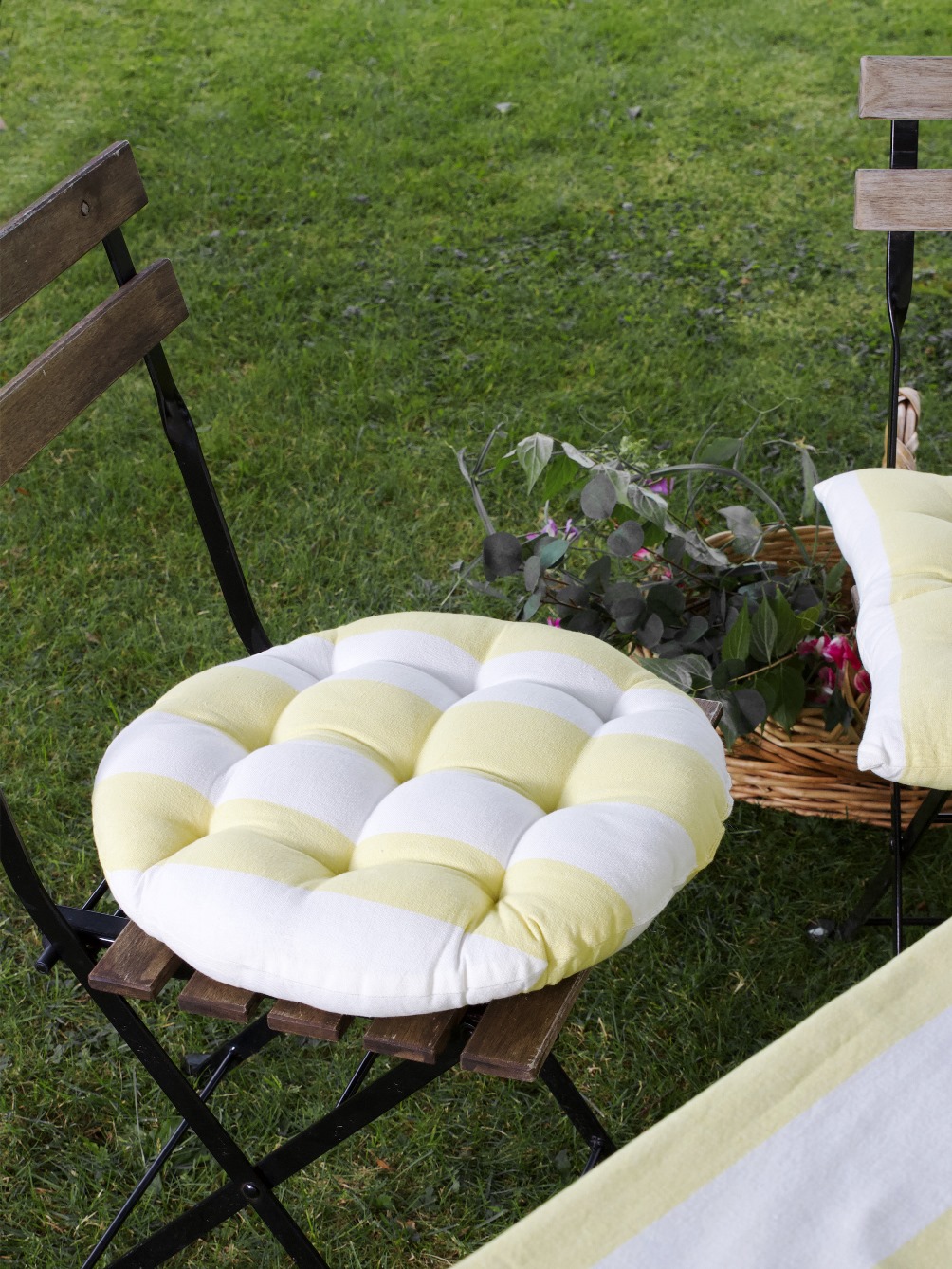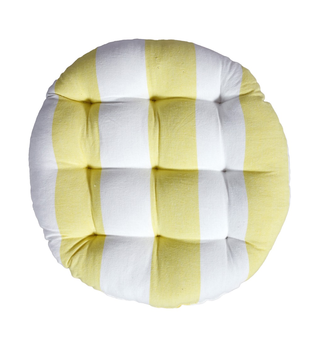 Stolsdyna Louise från Svanefors har fina ränder i gult och vitt som ger ett somrigt uttryck. Den runda designen i mjuk bomull har dekorativa stygn och en fyllning av polyester för extra komfort. En bekväm stolsdyna som är enkel att matcha med andra textilier och ger stolen en ombonad känsla.