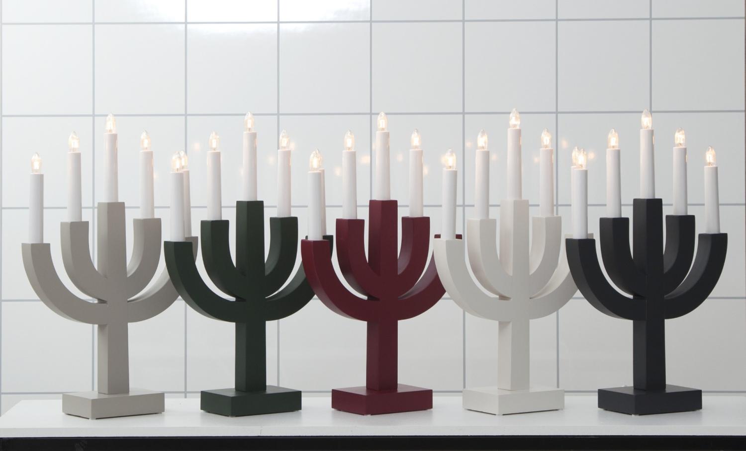 Selma adventsljusstake från Star Trading i grått trä med 5 ljuskällor som skapar en härlig julstämning.