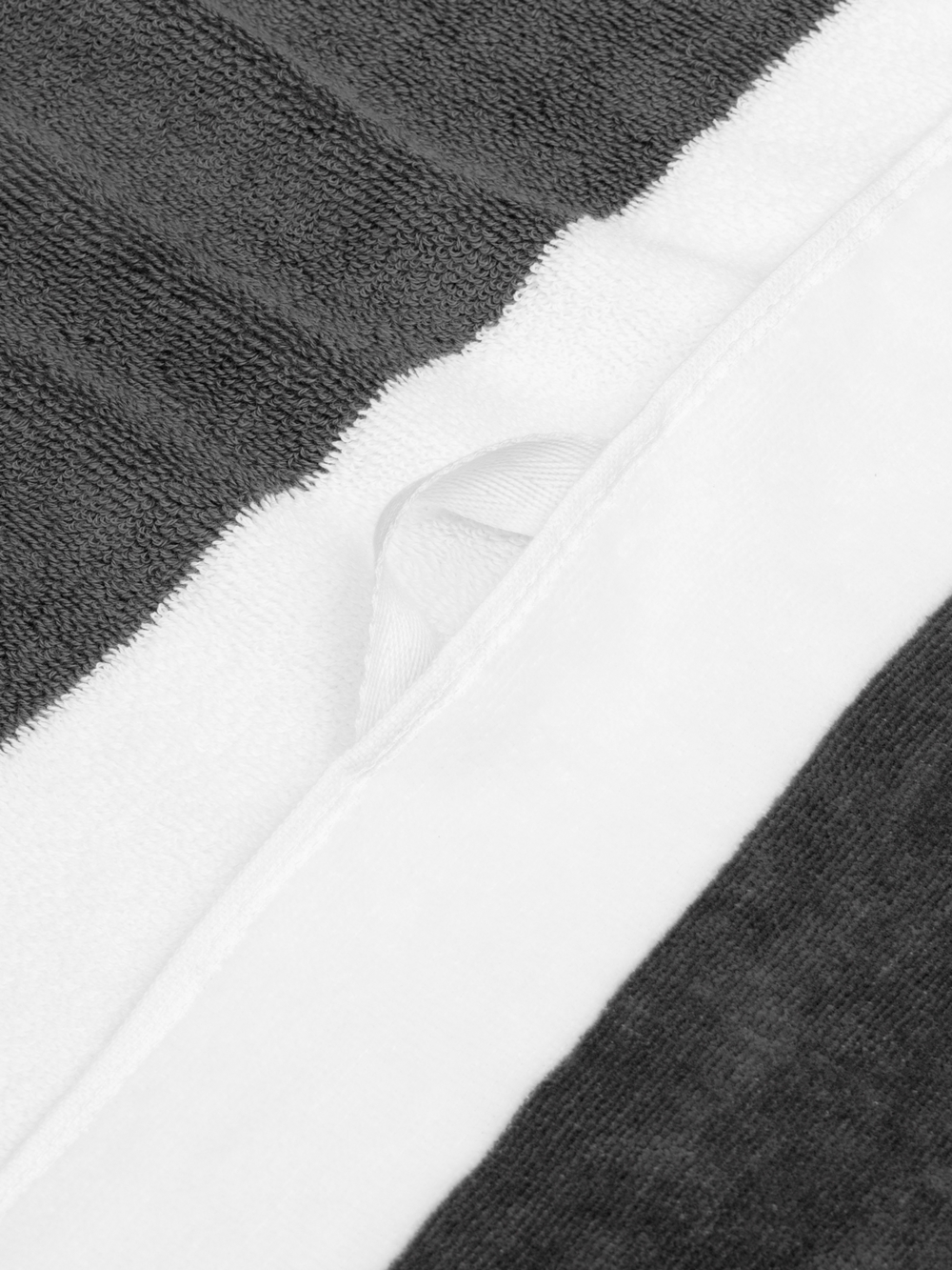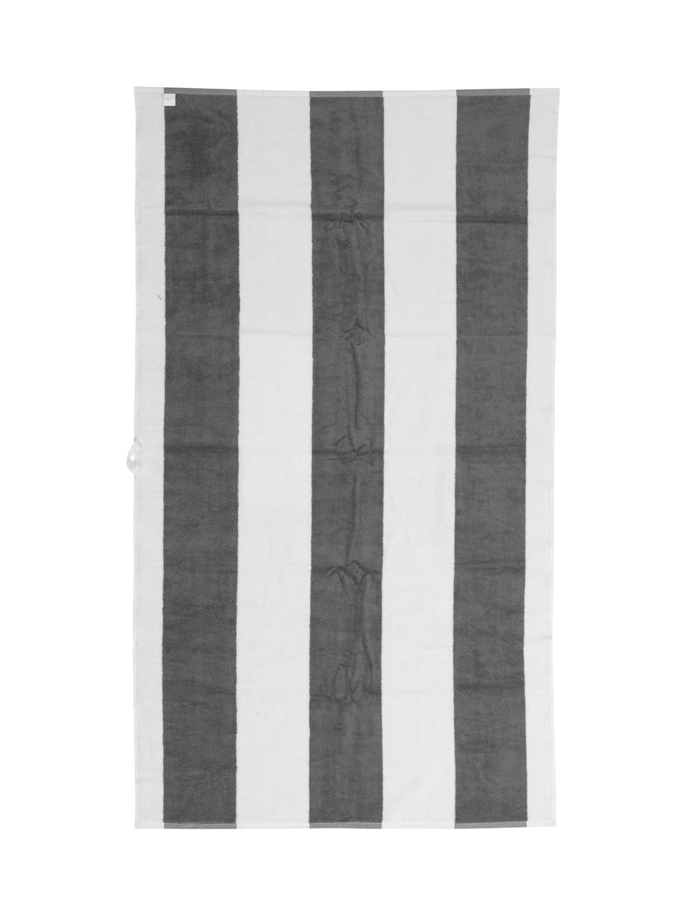 Strandhandduk Rand från Lord Nelson Victory i kraftig bomullsfrotté med ett tidlöst, marininspirerat mönster i breda vertikala ränder. Gråa nyanser varvas med vitt och skapar en stilren och somrig känsla för bryggan, stranden eller poolen. Storlek: 80x160 cm.