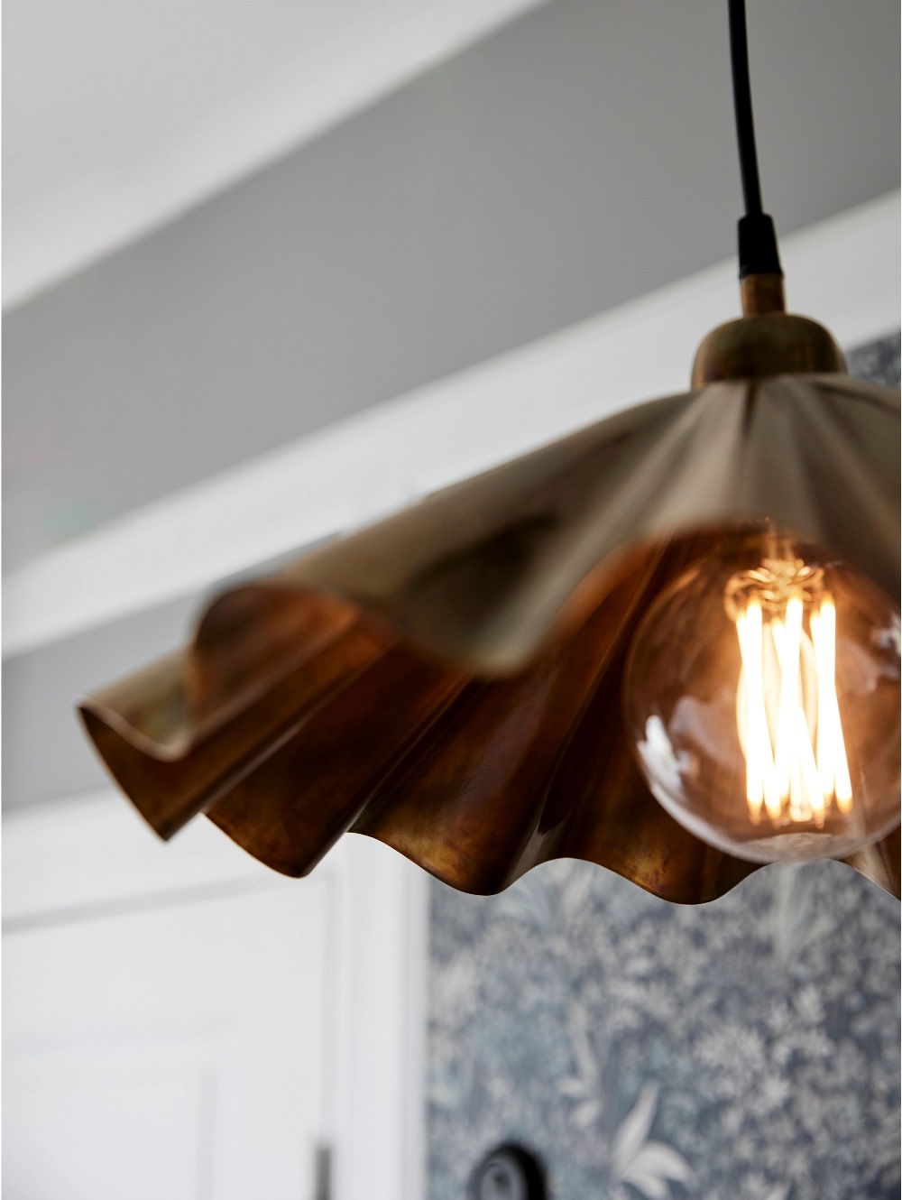 Taklampa Aira från PR Home har en vacker, organisk vågform i metall med handgjord oljemässingsfinish, varje lampa är unik. Den rustika stilen kombineras med modern design och skapar ett varmt, stämningsfullt sken i rummet. Höjd 21 cm och bredd och djup 49 cm. Den levereras med en 1,6 meter svart plastsladd med takkopp för krokupphängning. Till Aira rekommenderas en ljuskälla med en E27 sockel, max 25W. Ljuskälla ingår ej.