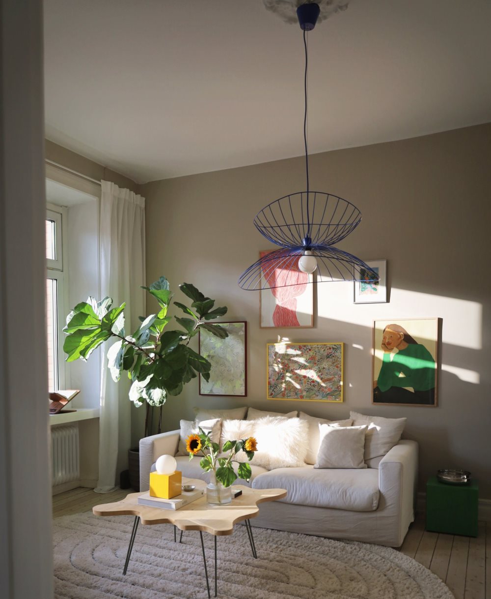 Taklampa Ray från Globen Lighting har en unik design som kombinerar mjuka och grafiska linjer. Lampan är tillverkad av metall i en matt klarblå nyans med en vacker, vågformad ytterkant som påminner om en rocka.