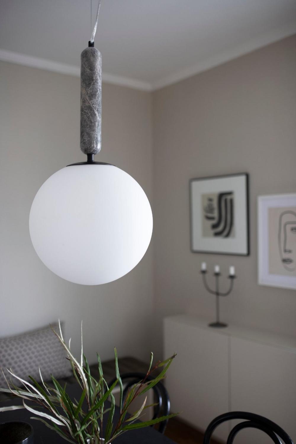 Taklampa Torrano från Globen Lighting i vacker, solid grå marmor med vit marmorering som är en exklusiv inredningsdetalj som verkligen tar plats i rummet. De mjuka, runda formerna skapar en spännande kontrast mot stenens naturliga tyngd och struktur, vilket ger designen både karaktär och elegans.