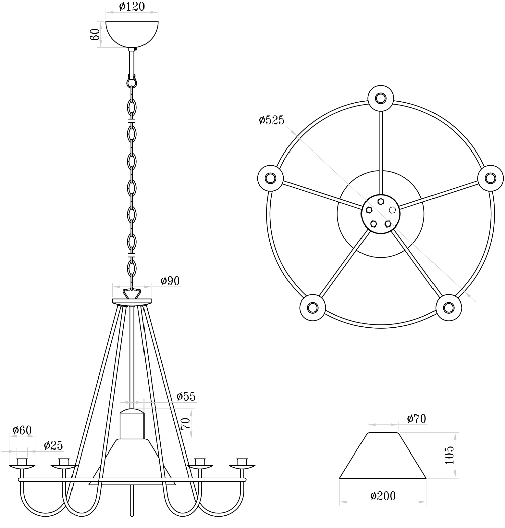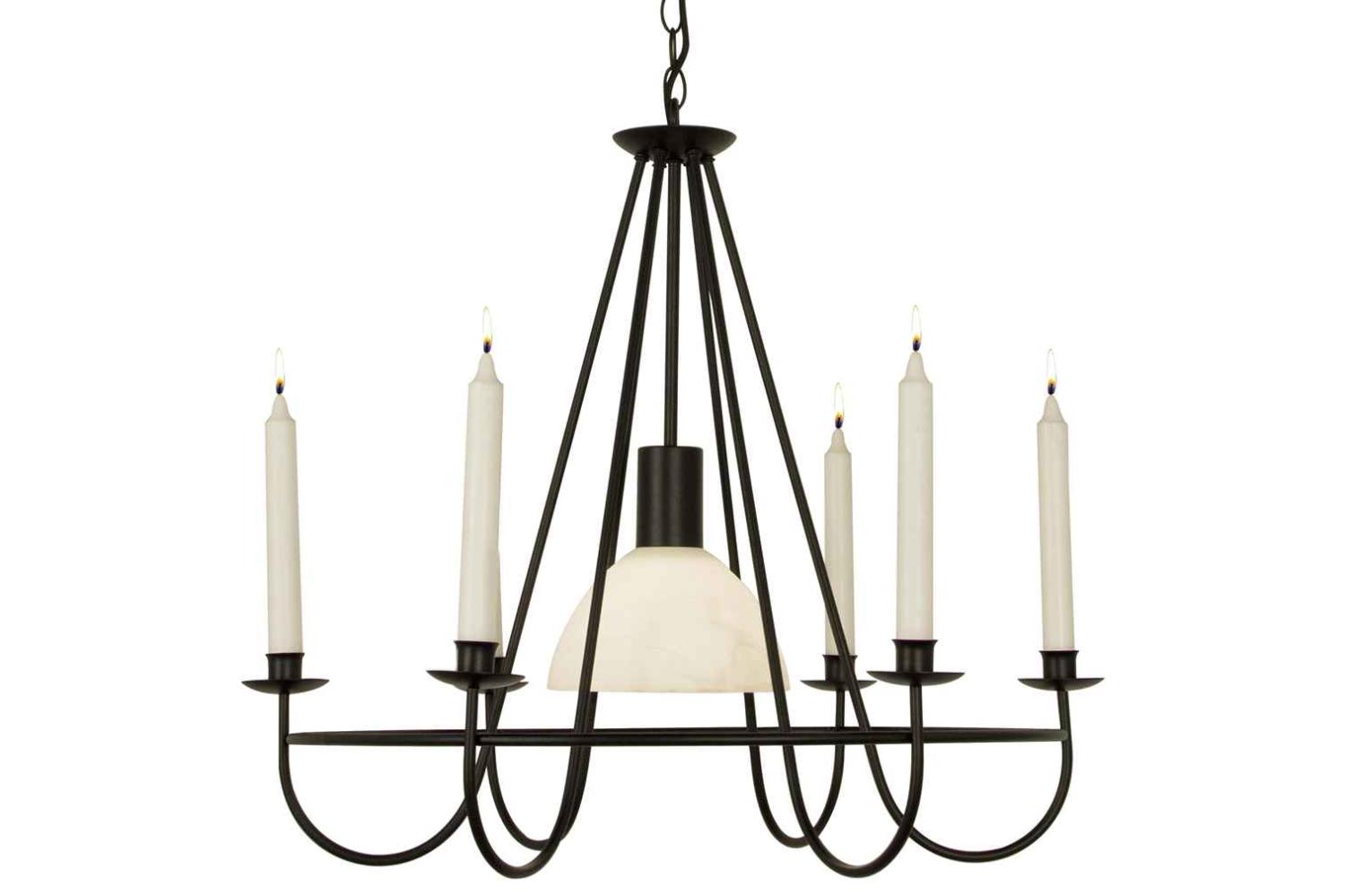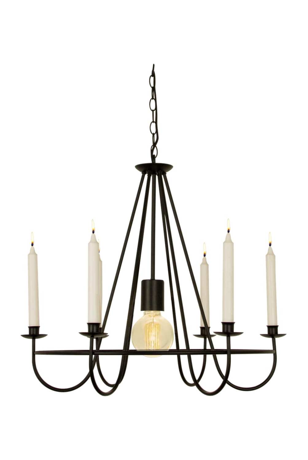 Taklampa Kronoberg från Aneta Lighting har en stilfull design i svartlackerad metall med 6st ljushållare för lampettljus. Lampan har en klassisk och modern design som gör den till ett elegant blickfång i rummet. Den sprider ett behagligt ljus och passar särskilt fint över ett matbord. Ljushållarna har en diameter på 1,8 cm och passar till lampettljus. Rekommenderad ljuskälla max 60 watt, E27. Dekorativ glasskärm finns att köpa till för den som önskar ett avskärmat ljus. OBS! Glaskupa ingår ej, kan beställas separat. Ljuskälla ingår ej.