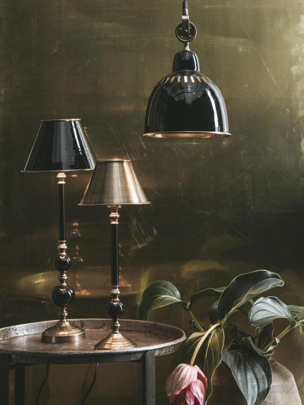Cleveland från PR Home är tillverkad i svart metall med fina detaljer i en elegant finish av antikmässing. Den har en tuff och industriell design som passar på många olika ställen tack vare sin nätta storlek. Höjd 34 cm och diameter 23 cm. Den levereras med en 1,6 meter svart sladd med takkopp. Till Classic rekommenderas en ljuskälla med en E27 sockel, max 40W. Ljuskälla och takkontakt ingår ej.