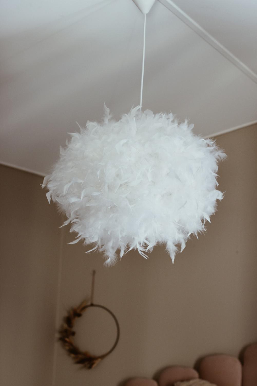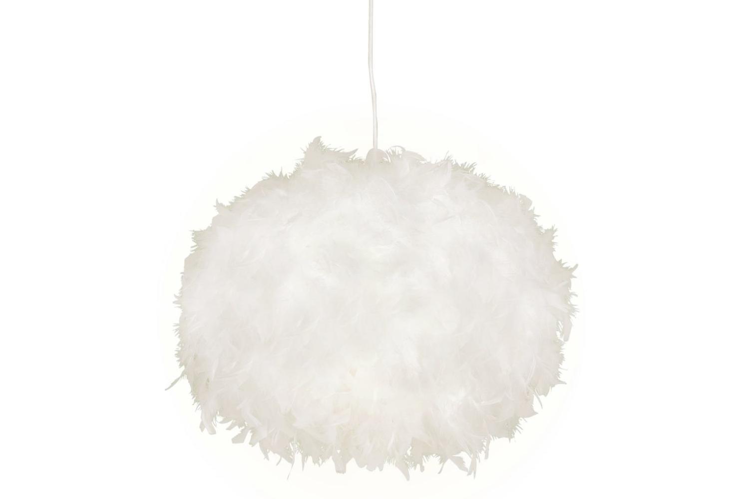 Taklampa Dun från Aneta Lighting är en dekorativ och mjuk inredningsdetalj i fluffigt fjädermaterial. Den här stilrena taklampan passar perfekt i sovrum, vardagsrum eller andra rum där du vill skapa ett varmt och behagligt ljus. De plockade fjädrarna sprider ett mjukt sken och bidrar till en ombonad känsla i rummet. Intyg om djurvänligt plockade fjädrar finns. Höjden är 30 cm och bredd och djup är 40 cm. Rekommenderad ljuskälla max 60W, E27. Den levereras med en vit sladd. Ljuskälla ingår ej.
