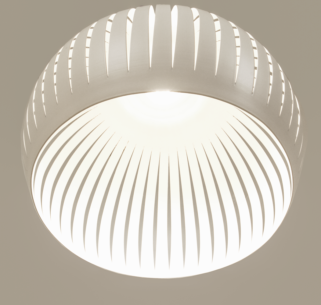 Taklampa Grafika är designad av Aneta Lighting i vitlackerad metall där skärmens skåror ger ett fint ljusspel i rummet. Med en skärmdiameter på 30 cm passar lampan perfekt att hänga i par över ett matbord eller som en enskild ljuspunkt ovanför soffhörnet. Den är anpassad för en GU10-reflektorlampa som sitter placerad högt upp i skärmen, vilket ger ett riktat ljus nedåt och skapar en spännande ljuseffekt. Skårorna i metallskärmen släpper dessutom igenom ljus på ett dekorativt sätt och ger ett vackert ljusspel i rummet. Bredstrålande ljuskälla rekommenderas. Ljuskälla ingår ej.