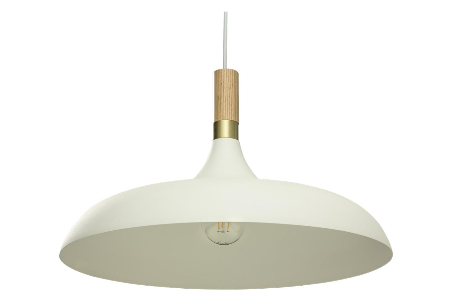 Sense taklampa från Aneta Lighting har en stilren design i vitlackerad metall och eleganta detaljer i trä och krom. Perfekt som belysning över matbordet där den både lyser upp och adderar karaktär till rummet. Till Sense rekommenderas en ljuskälla med E27 sockel, max 60W. Välj mellan flera fina färger. Ljuskälla ingår ej.