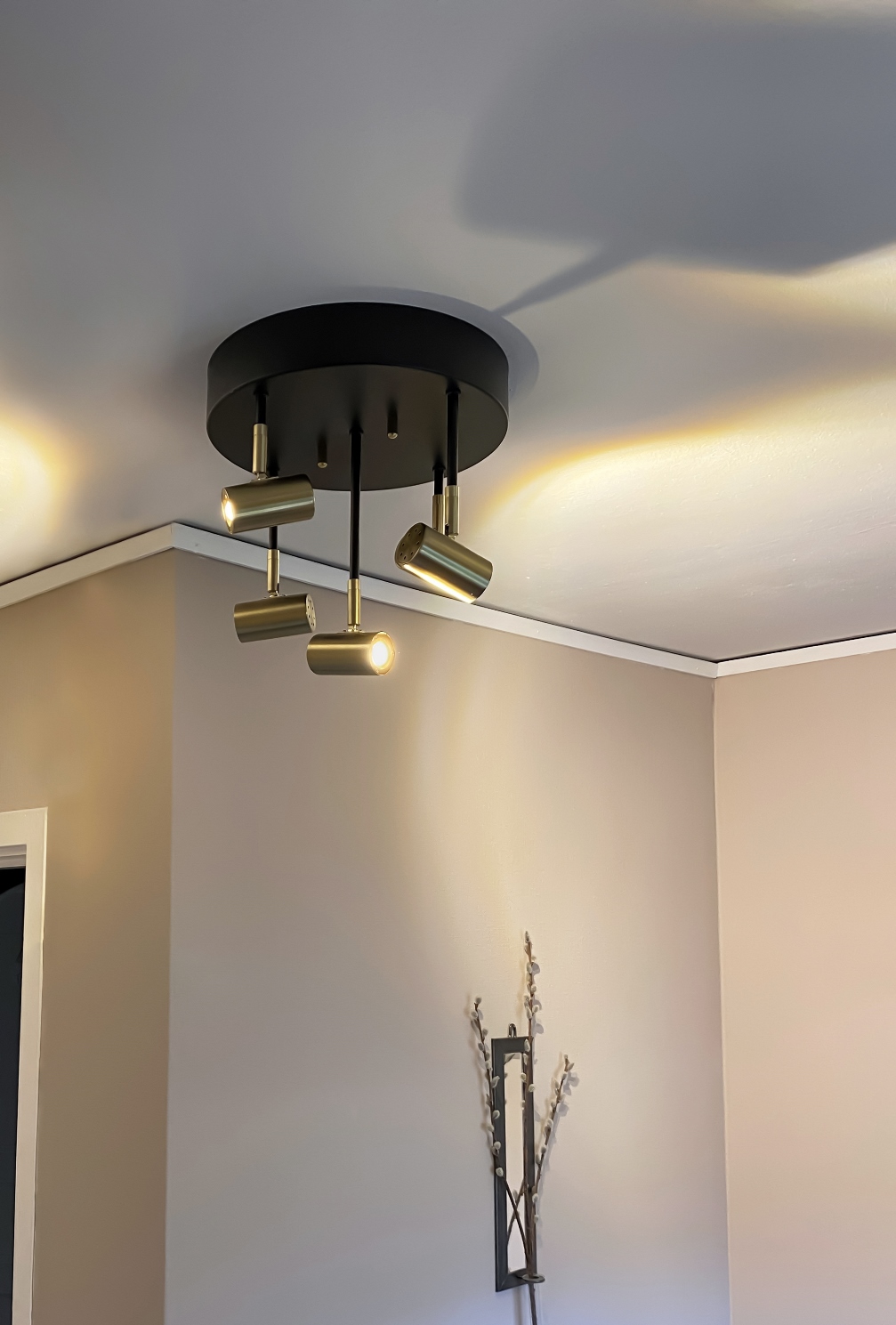 Takspotlight Gusto från Aneta Lighting har en stilren, rund design i svartlackerad metall med fina mässingdetaljer. Utrustad med fem integrerade LED-ljuskällor 5x400 lumen, 3000K som sprider ett behagligt varmvitt ljus. Den fina designen med de riktbara lamporna ger flexibel belysning där du behöver den mest. Rekommenderad ljuskälla max 3x5W, LED. Krokupphäng för enkel montering och Gusto är dimbar. Ljuskällor ingår.